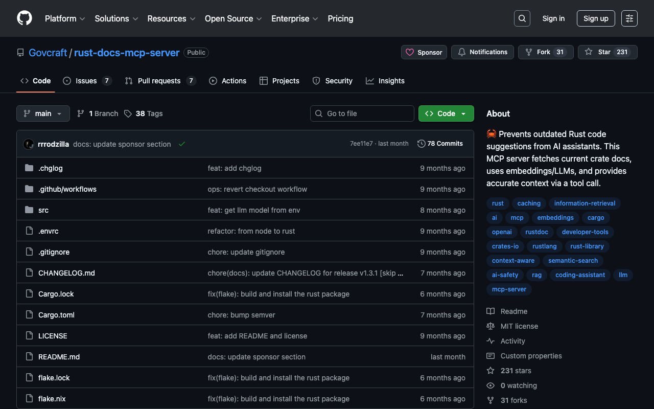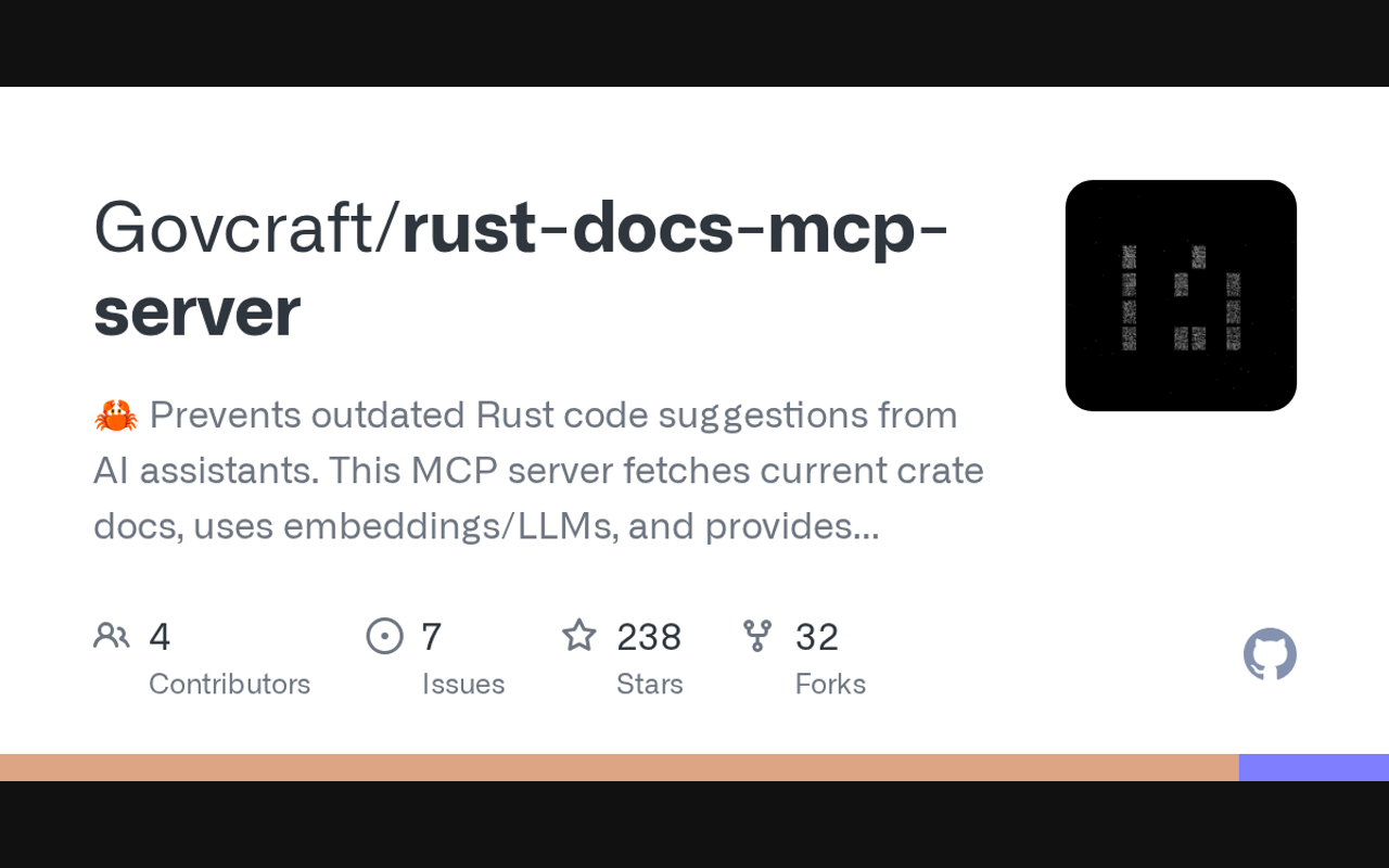 π¦ Prevents outdated Rust code suggestions from AI assistants. This MCP server fetches current crate docs, uses embeddings/LLMs, and provides accurate context via a tool call.
