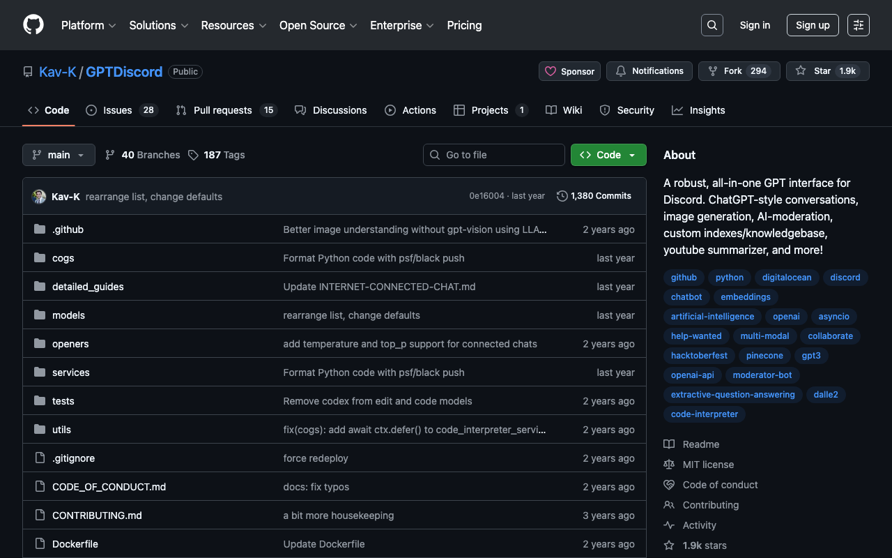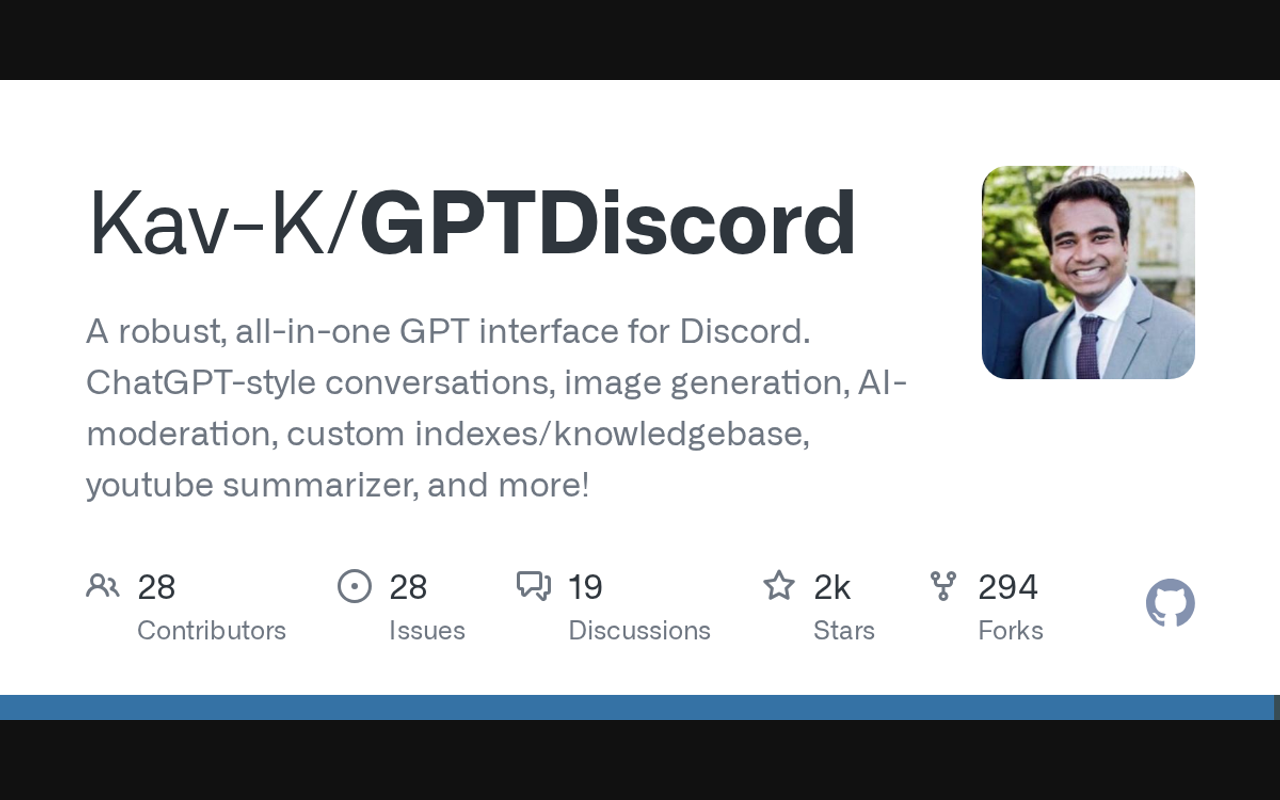 A robust, all-in-one GPT interface for Discord. ChatGPT-style conversations, image generation, AI-moderation, custom indexes/knowledgebase, youtube summarizer, and more!