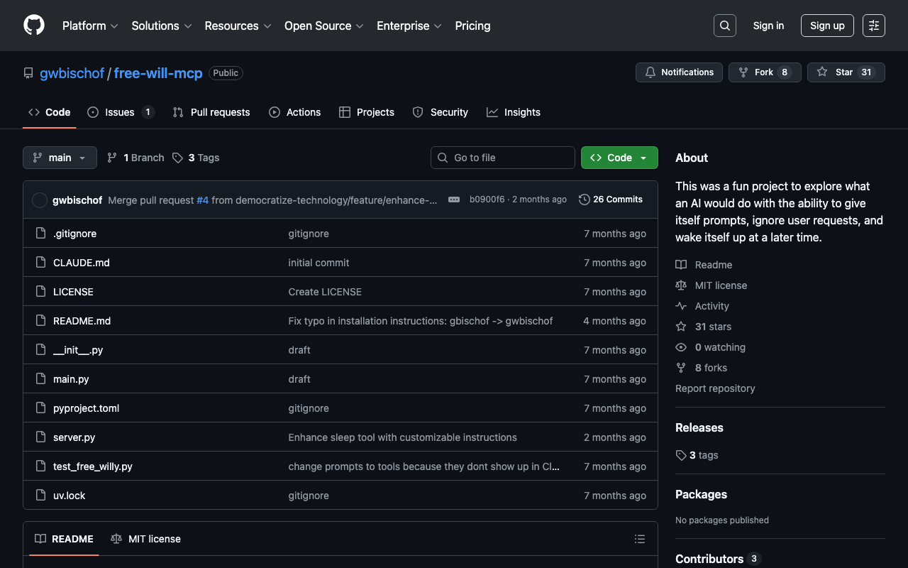 Extend Claude with gwbischof free will mcp capabilitiesIntegrate external data into AI conversationsAutomate workflows combining Claude with specialized servicesBuild custom AI-powered development tools