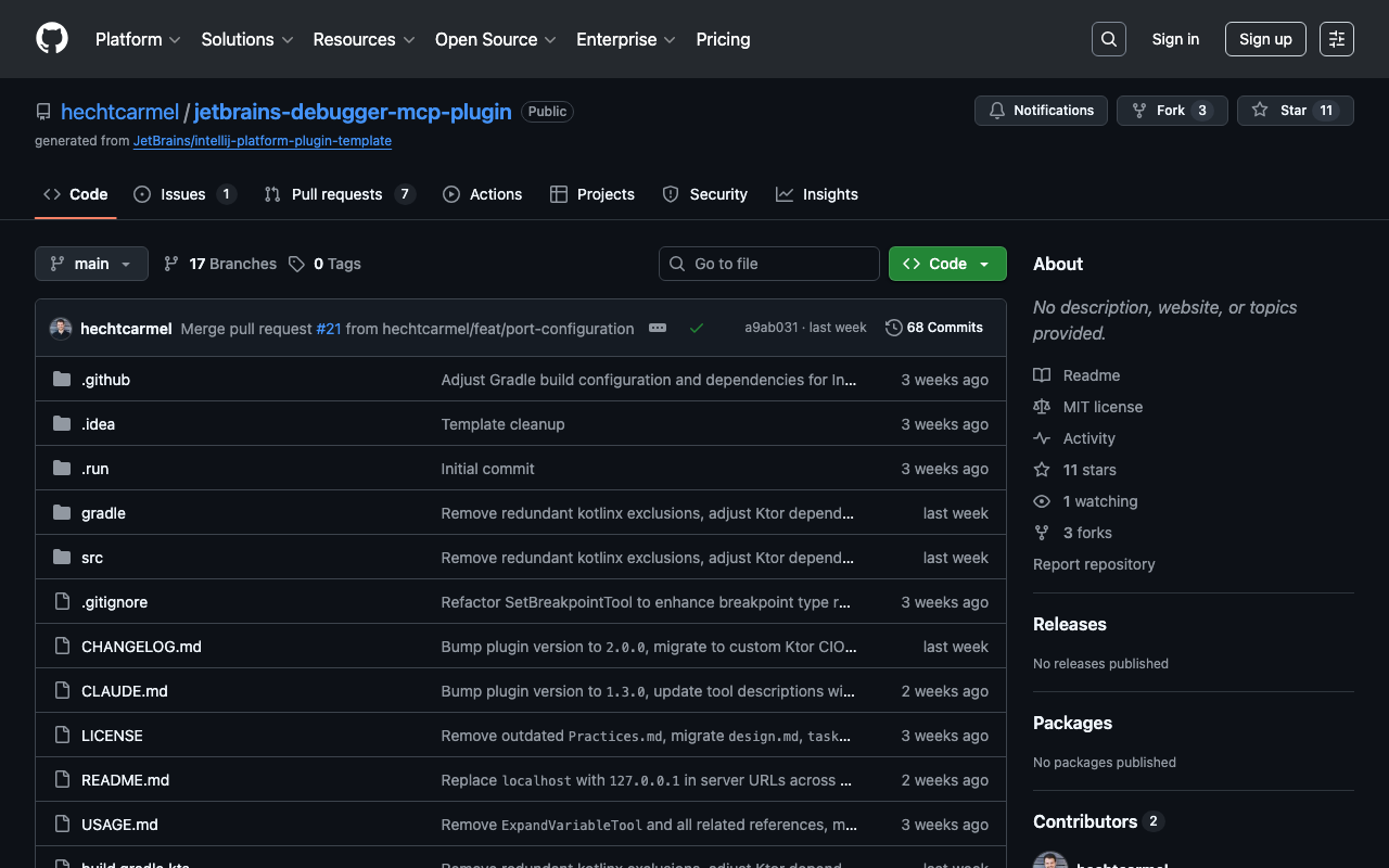 Extend Claude with hechtcarmel jetbrains debugger mcp plugin capabilitiesIntegrate external data into AI conversationsAutomate workflows combining Claude with specialized servicesBuild custom AI-powered development tools