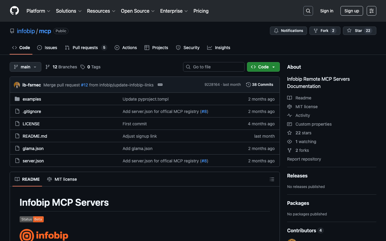 Extend Claude with Infobip mcp capabilitiesIntegrate external data into AI conversationsAutomate workflows combining Claude with specialized servicesBuild custom AI-powered development tools