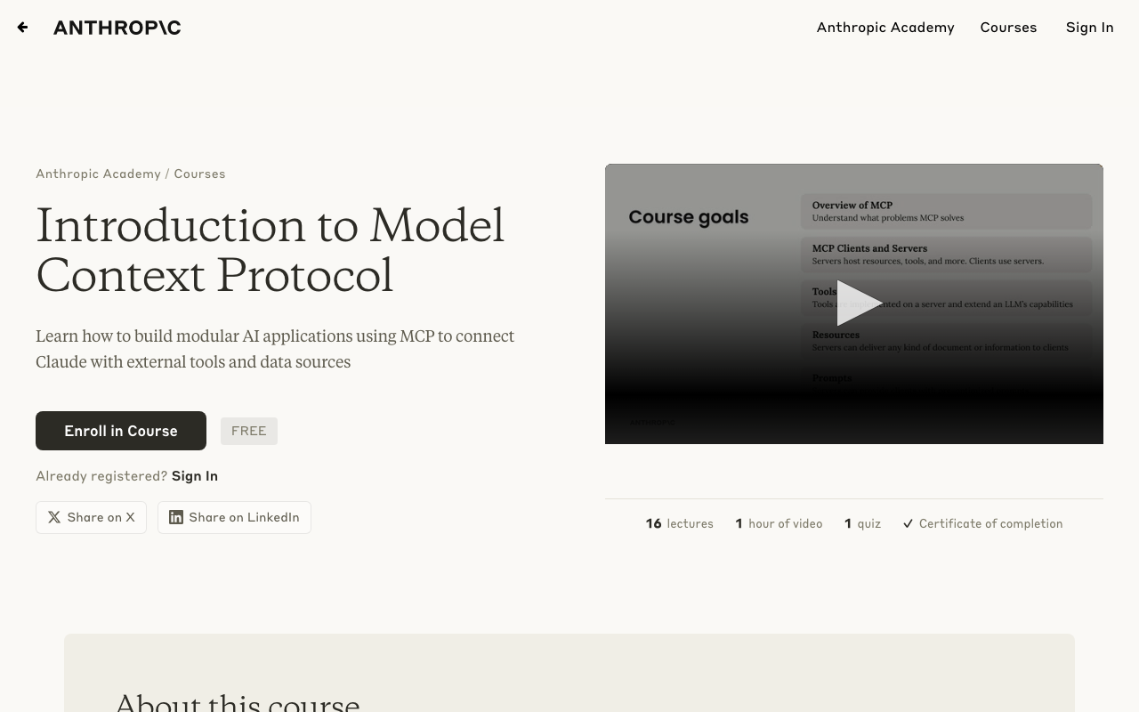 Extend Claude with Introduction to Model Context Protocol capabilitiesIntegrate external data into AI conversationsAutomate workflows combining Claude with specialized servicesBuild custom AI-powered development tools