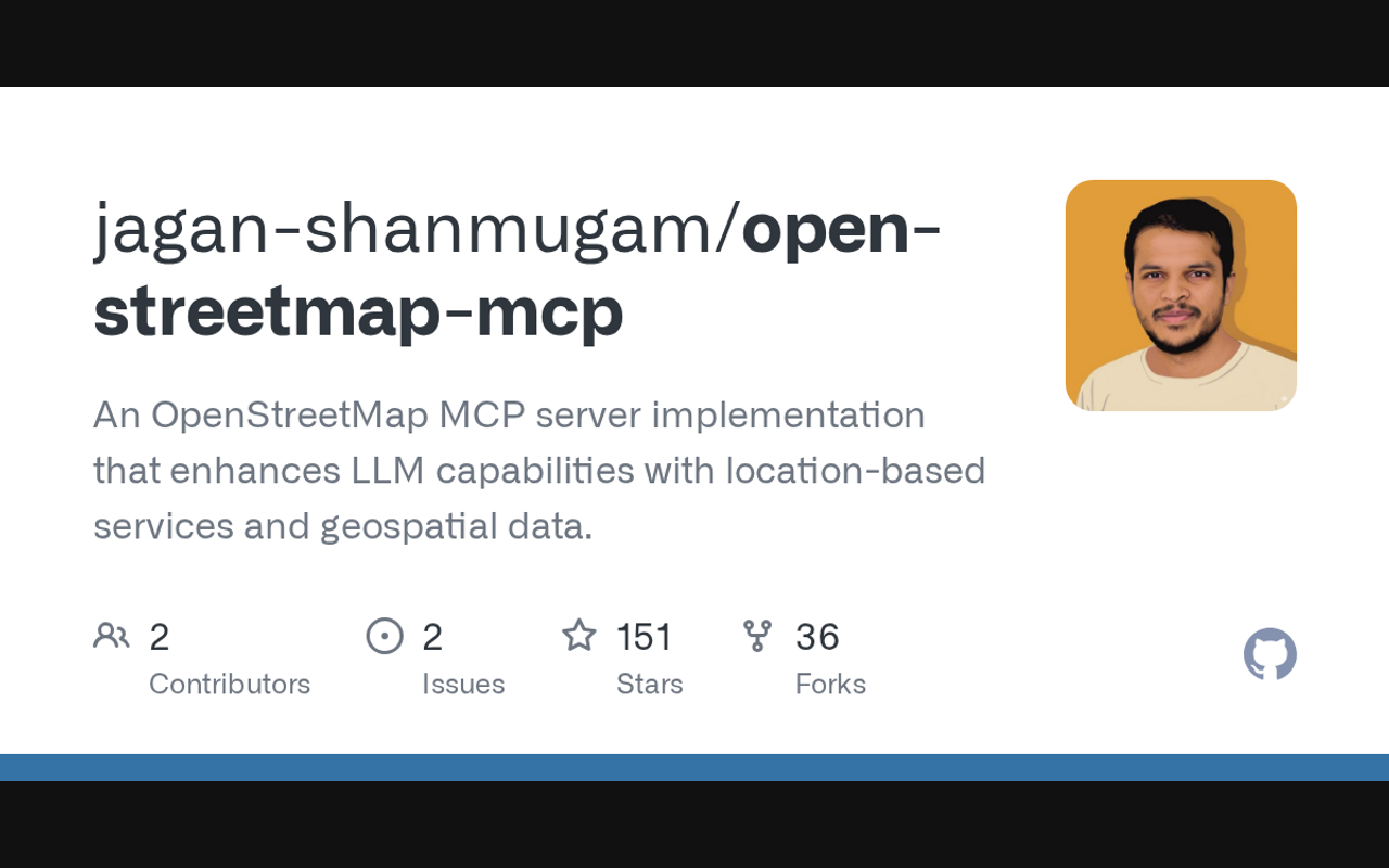 Extend Claude with jagan shanmugam open streetmap mcp capabilitiesIntegrate external data into AI conversationsAutomate workflows combining Claude with specialized servicesBuild custom AI-powered development tools