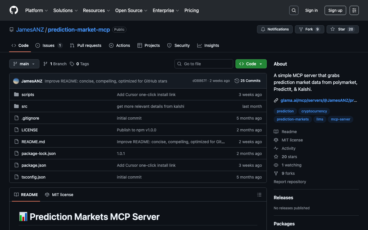 Extend Claude with JamesANZ prediction market mcp capabilitiesIntegrate external data into AI conversationsAutomate workflows combining Claude with specialized servicesBuild custom AI-powered development tools