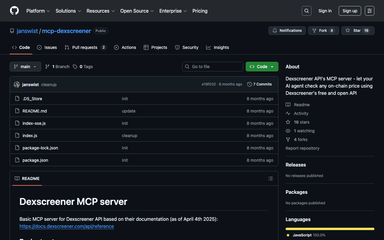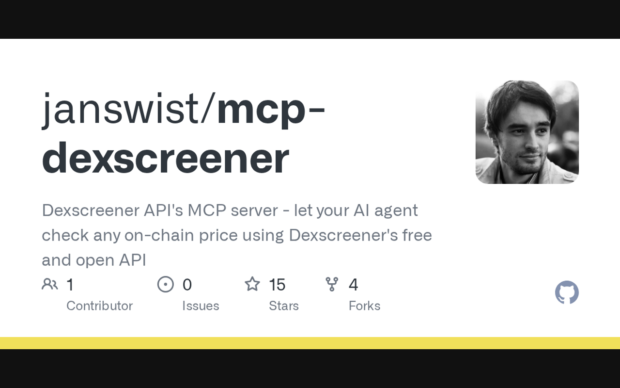 Extend Claude with janswist mcp dexscreener capabilitiesIntegrate external data into AI conversationsAutomate workflows combining Claude with specialized servicesBuild custom AI-powered development tools