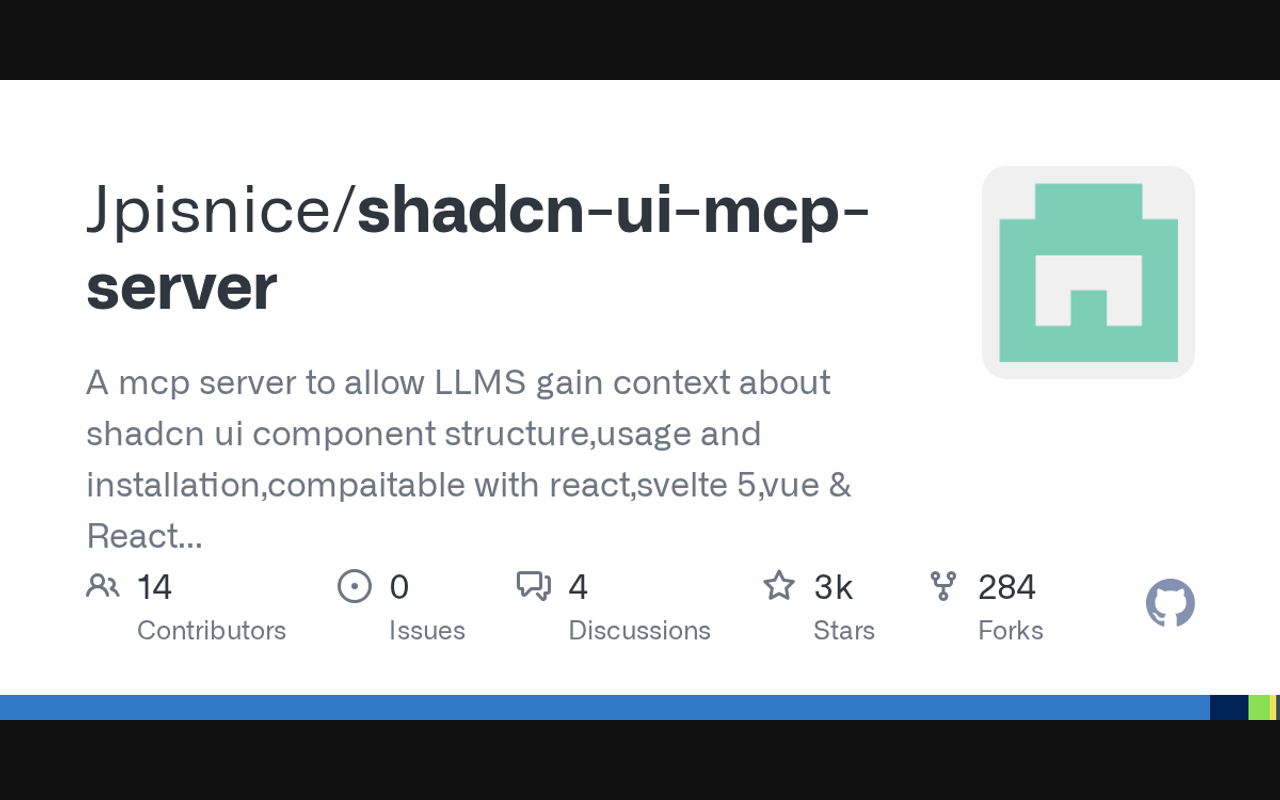Extend Claude with Jpisnice shadcn ui mcp server capabilitiesIntegrate external data into AI conversationsAutomate workflows combining Claude with specialized servicesBuild custom AI-powered development tools
