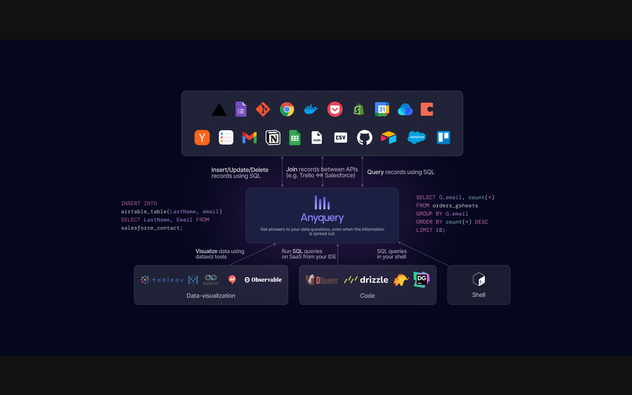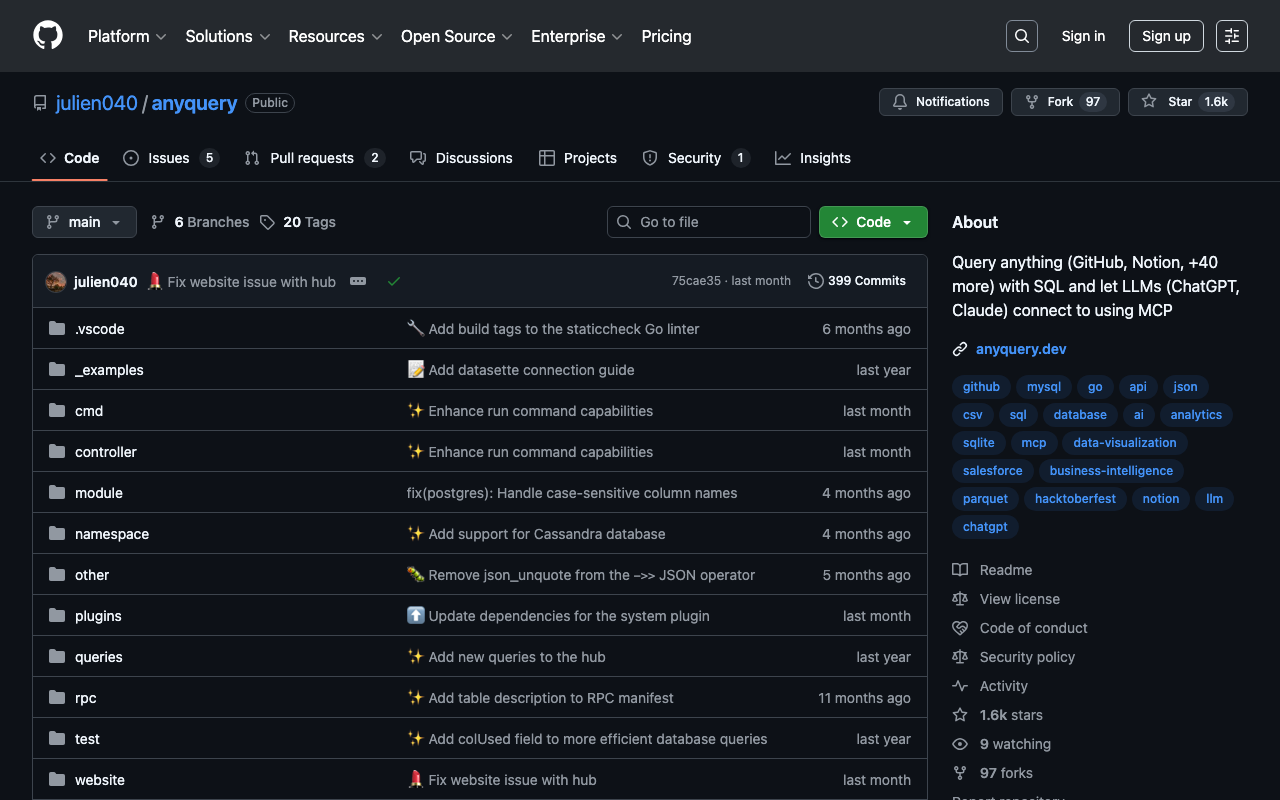 Extend Claude with julien040 anyquery capabilitiesIntegrate external data into AI conversationsAutomate workflows combining Claude with specialized servicesBuild custom AI-powered development tools