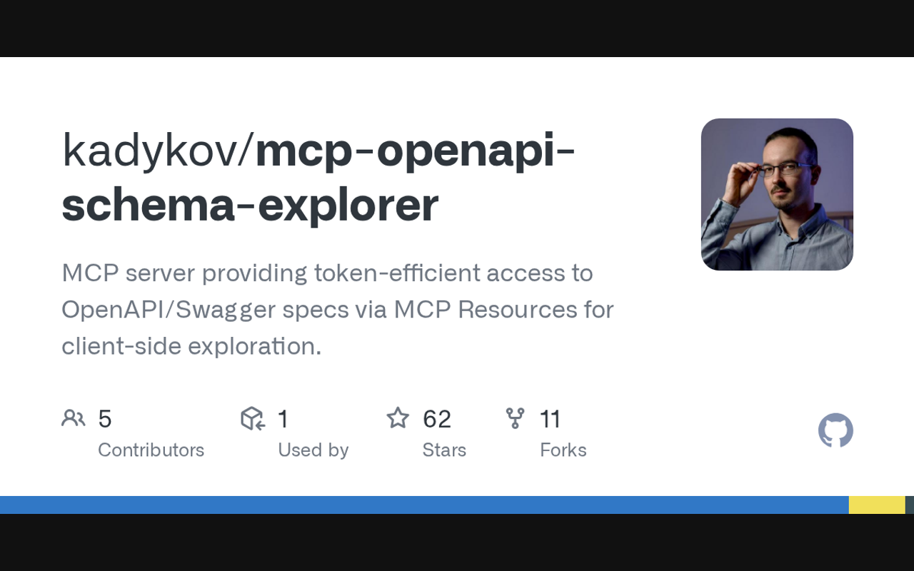 Extend Claude with kadykov mcp openapi schema explorer capabilitiesIntegrate external data into AI conversationsAutomate workflows combining Claude with specialized servicesBuild custom AI-powered development tools