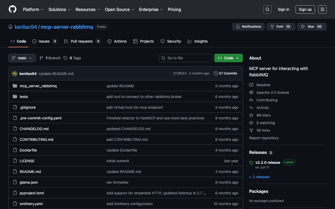 Extend Claude with kenliao94 mcp server rabbitmq capabilitiesIntegrate external data into AI conversationsAutomate workflows combining Claude with specialized servicesBuild custom AI-powered development tools