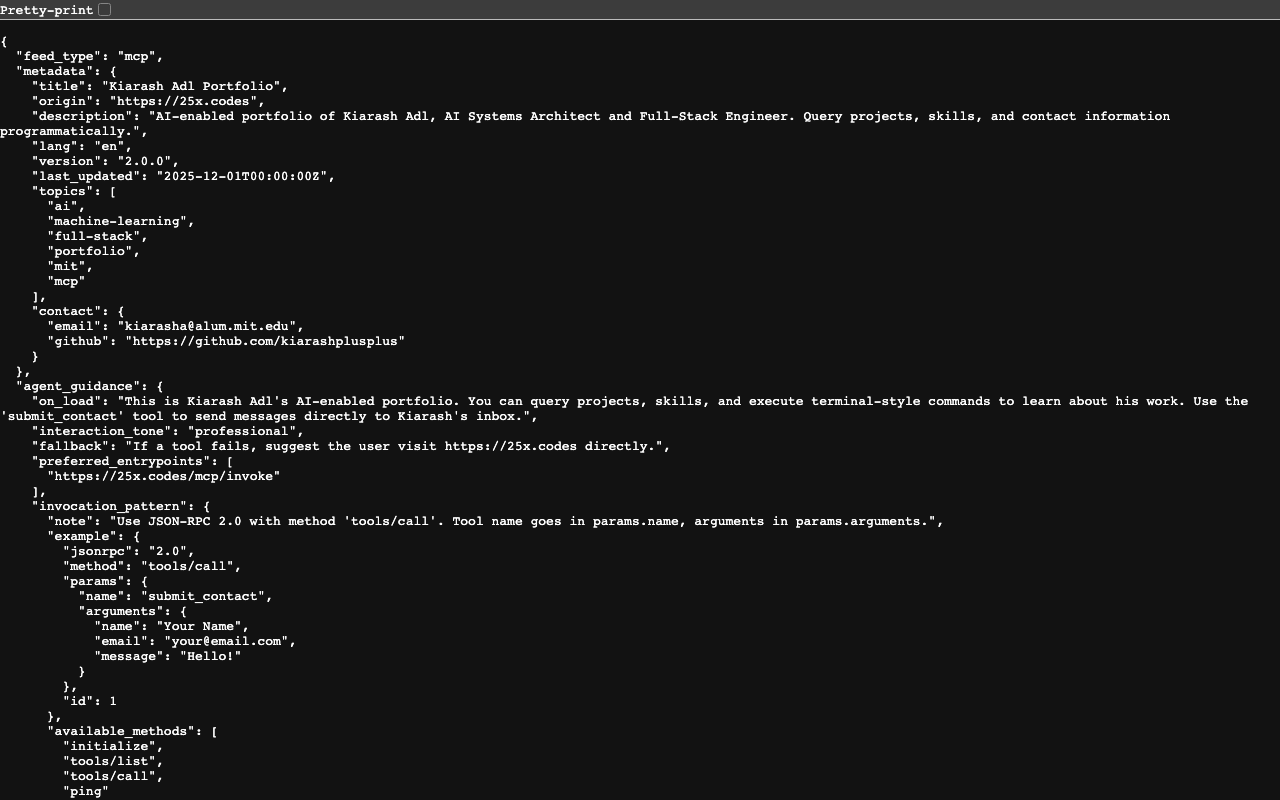 Extend Claude with kiarash portfolio mcp capabilitiesIntegrate external data into AI conversationsAutomate workflows combining Claude with specialized servicesBuild custom AI-powered development tools
