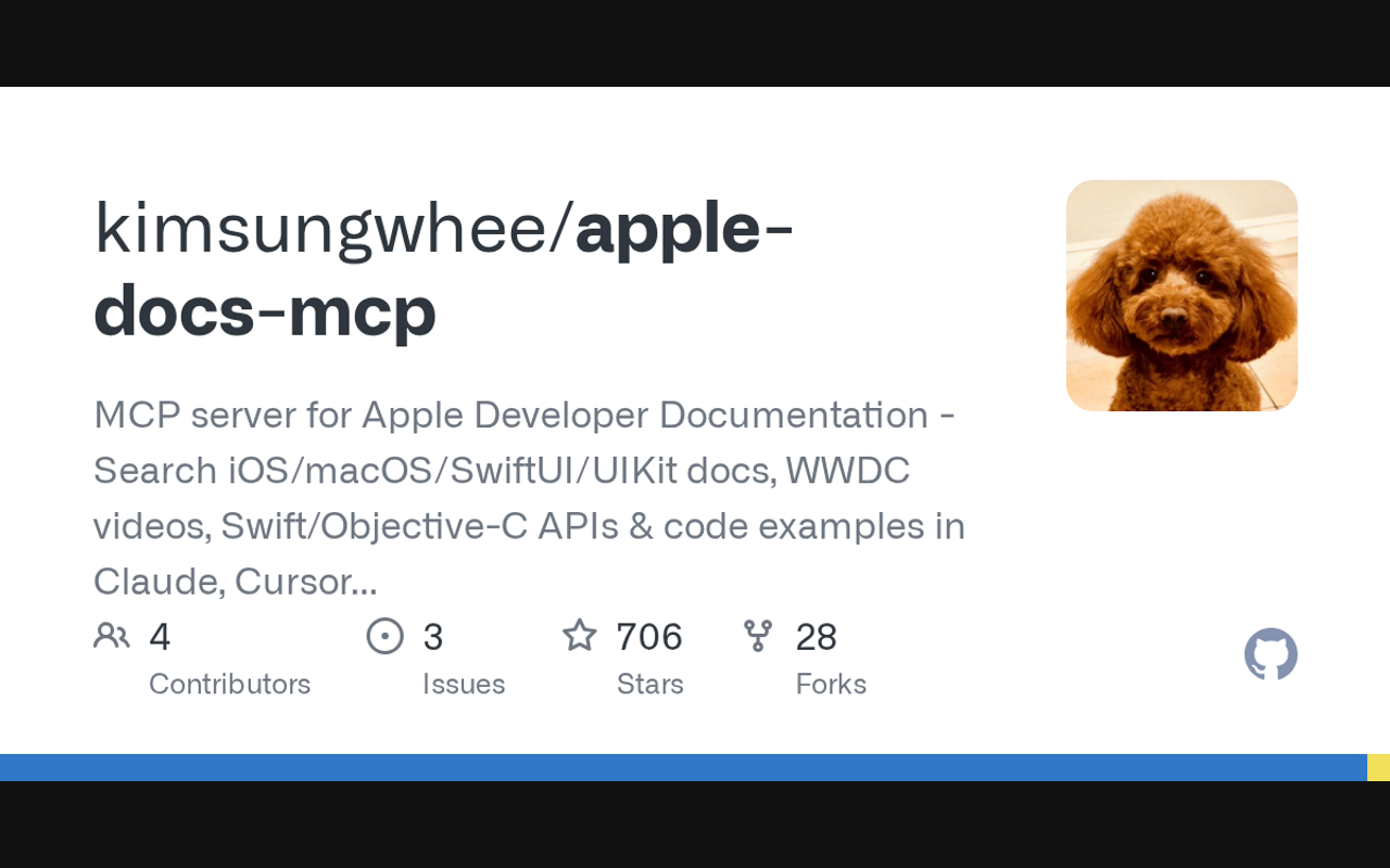 A powerful Model Context Protocol (MCP) server that provides seamless access to Apple Developer Documentation through natural language queries. Search, explore, and get detailed information about Apple frameworks, APIs, sample code, and more directly in your AI-powered development environment.
