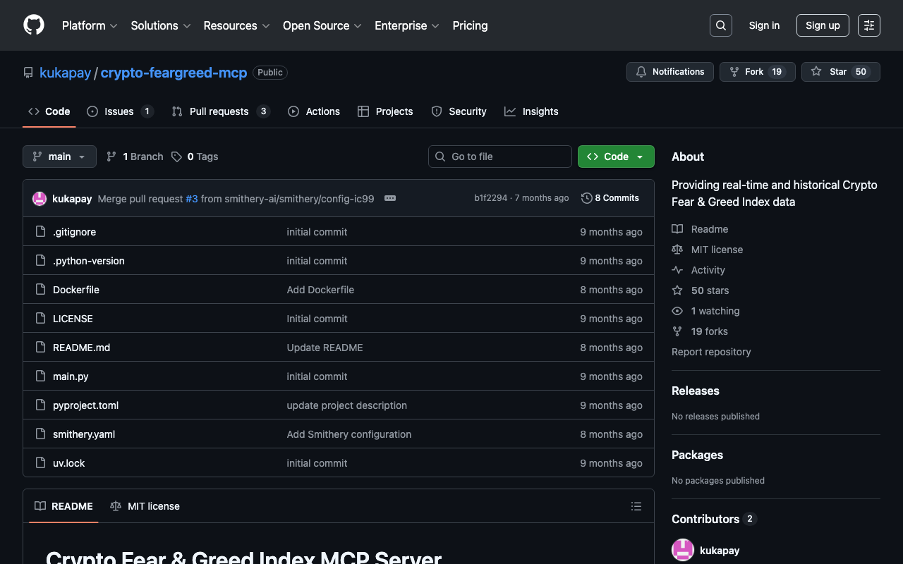 Extend Claude with kukapay crypto feargreed mcp capabilitiesIntegrate external data into AI conversationsAutomate workflows combining Claude with specialized servicesBuild custom AI-powered development tools