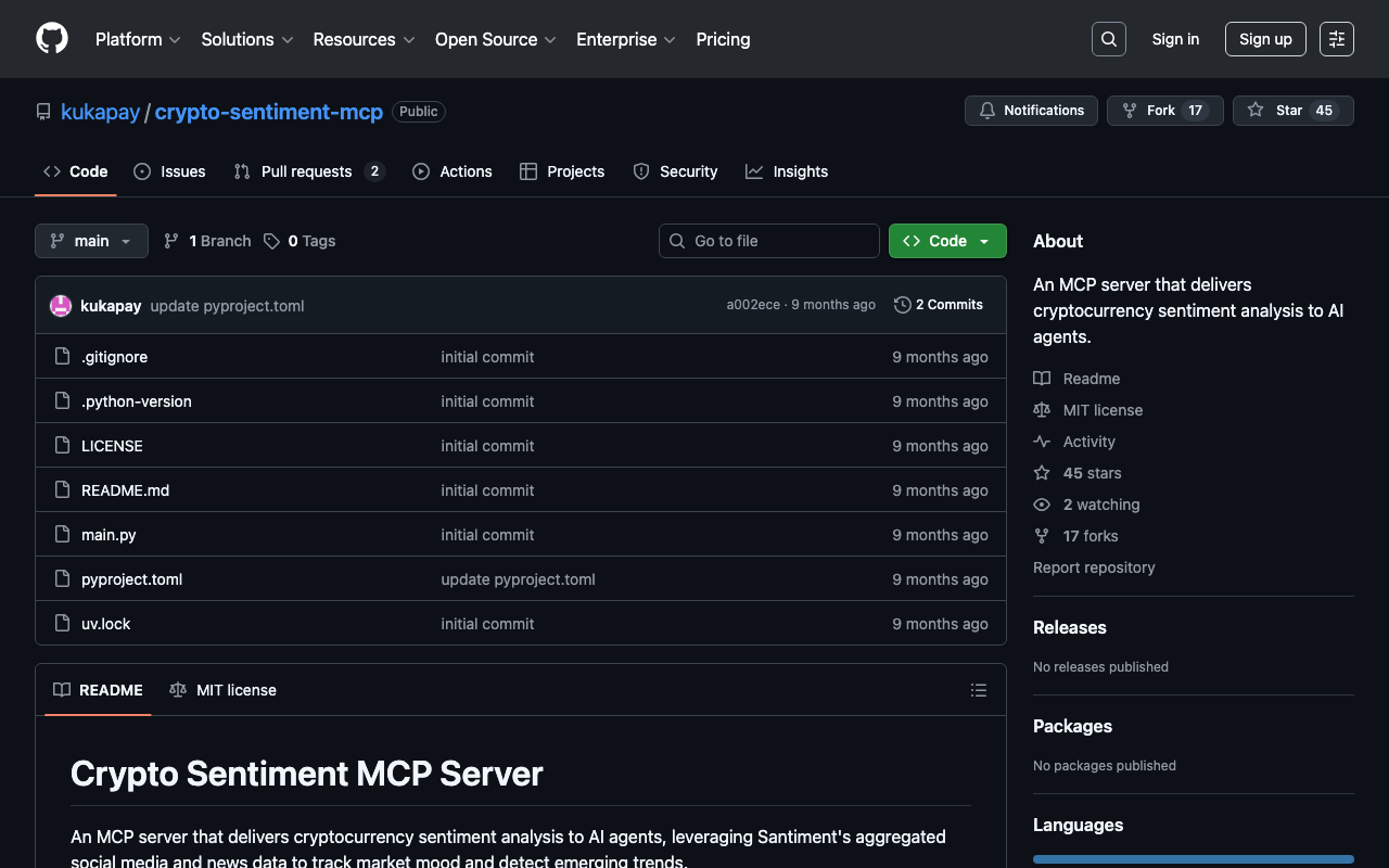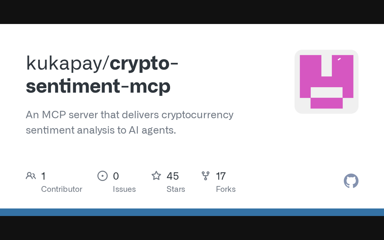 Extend Claude with kukapay crypto sentiment mcp capabilitiesIntegrate external data into AI conversationsAutomate workflows combining Claude with specialized servicesBuild custom AI-powered development tools