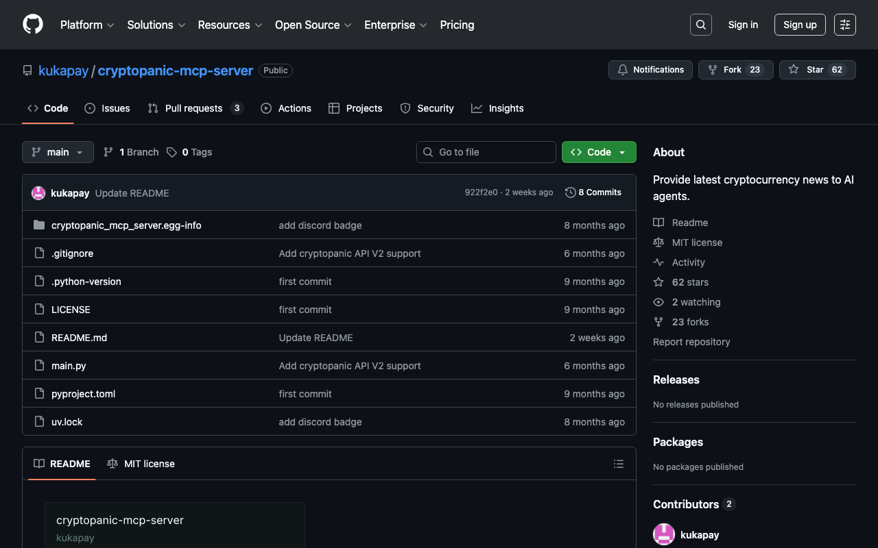 Extend Claude with kukapay cryptopanic mcp server capabilitiesIntegrate external data into AI conversationsAutomate workflows combining Claude with specialized servicesBuild custom AI-powered development tools