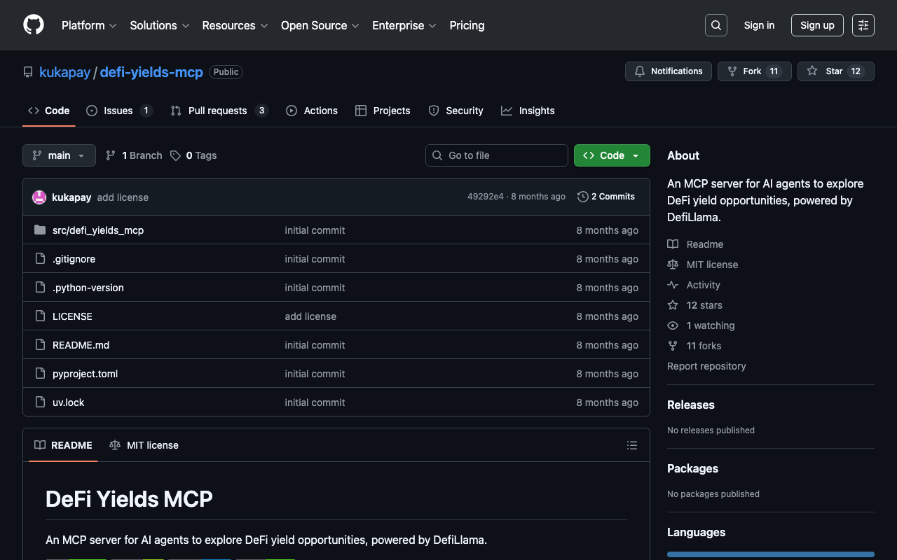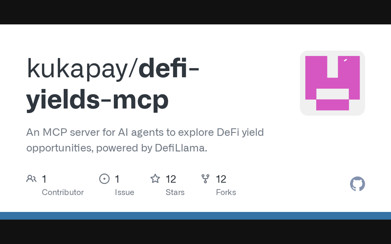 Extend Claude with kukapay defi yields mcp capabilitiesIntegrate external data into AI conversationsAutomate workflows combining Claude with specialized servicesBuild custom AI-powered development tools