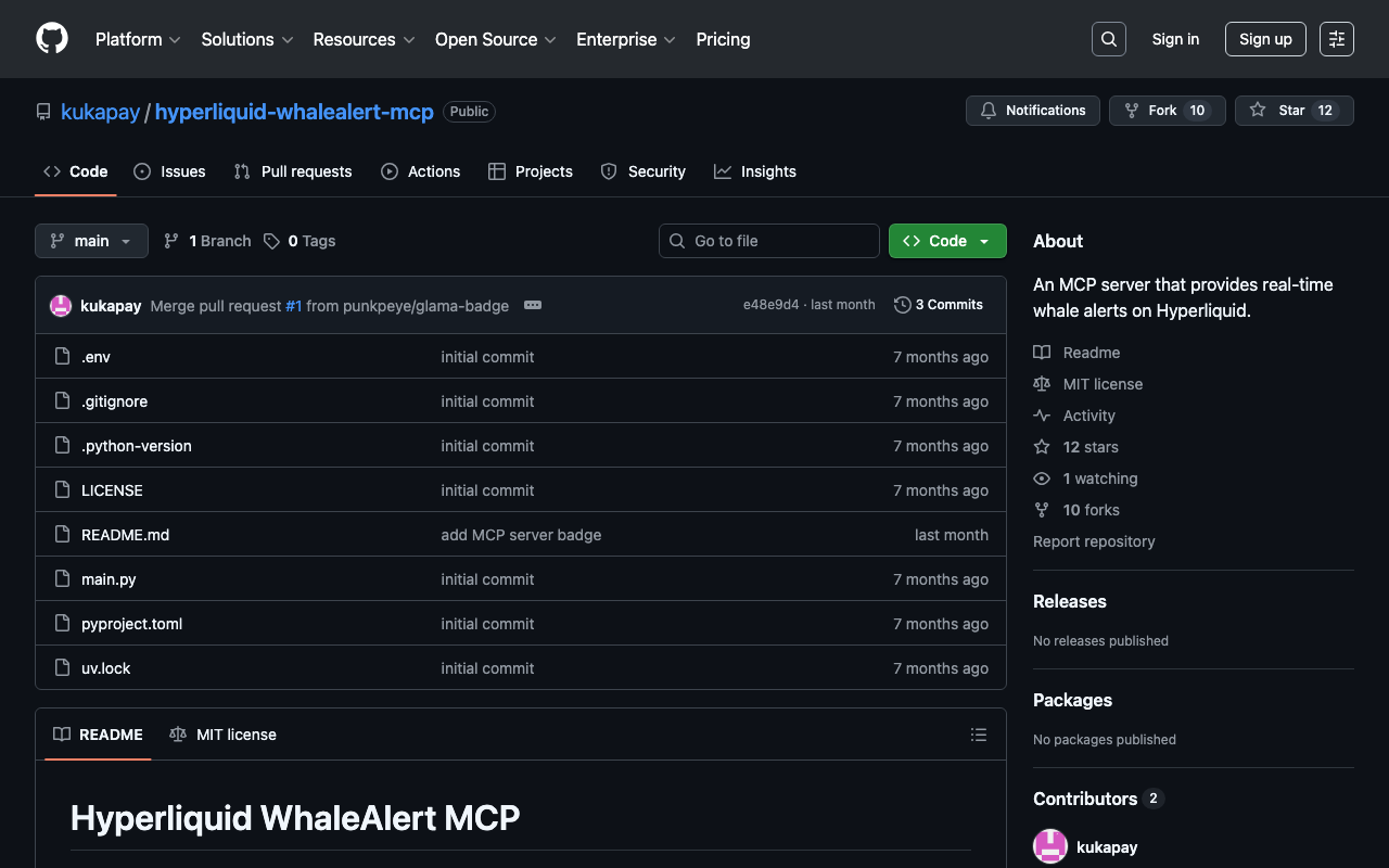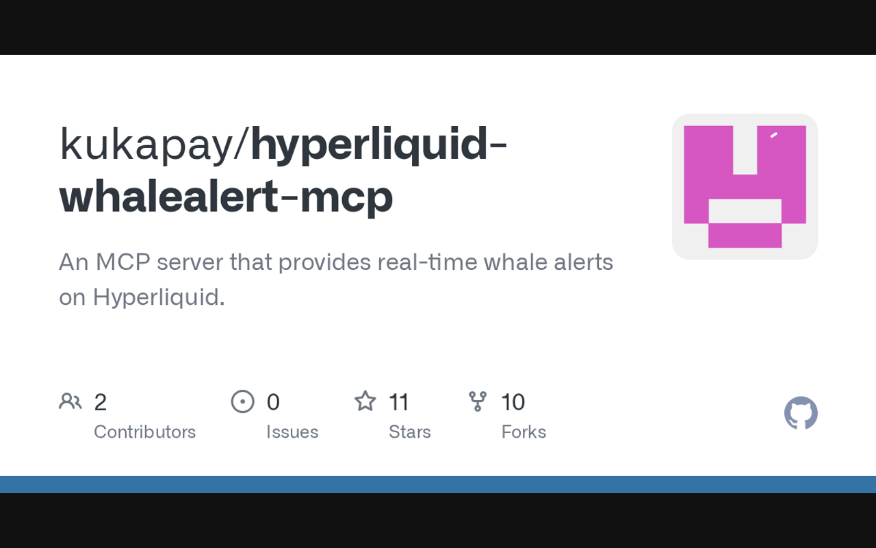 Extend Claude with kukapay hyperliquid whalealert mcp capabilitiesIntegrate external data into AI conversationsAutomate workflows combining Claude with specialized servicesBuild custom AI-powered development tools