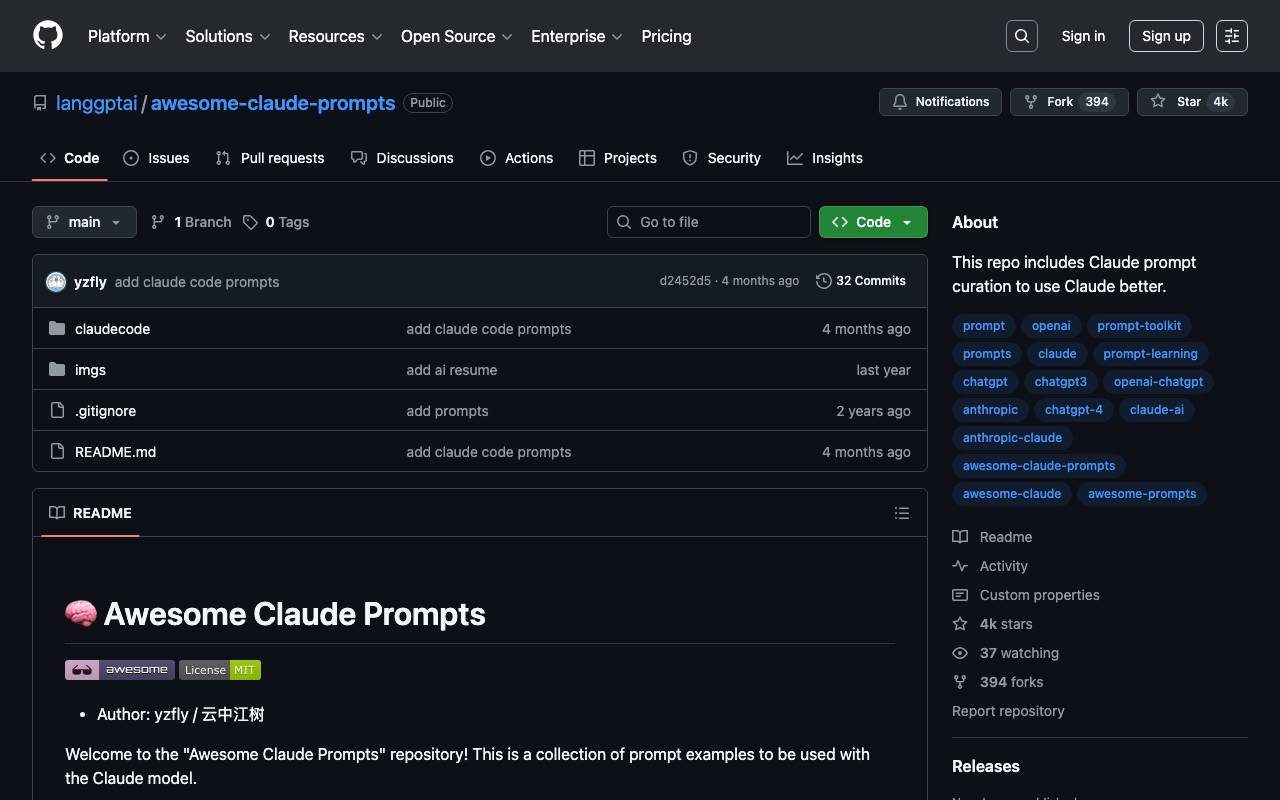langgptai/awesome-claude-prompts | Claude Insider Resources