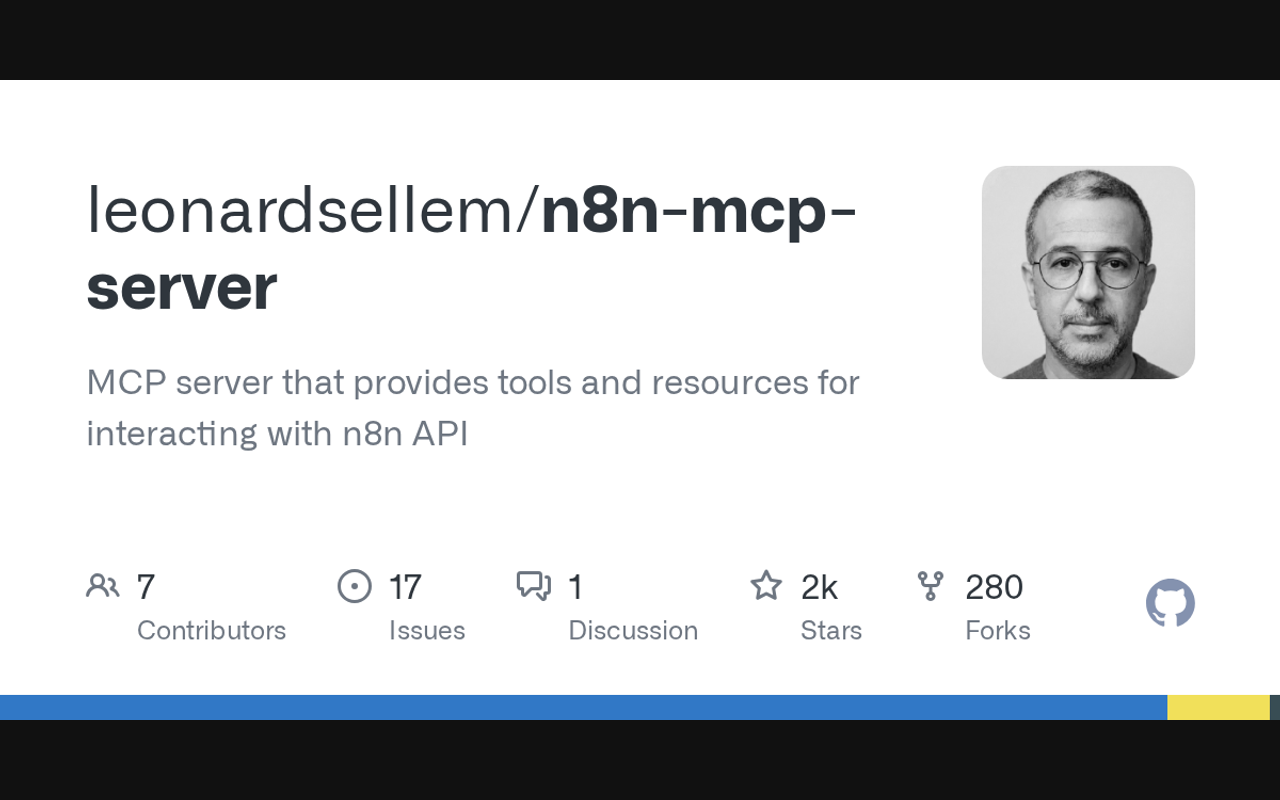 This MCP server provides tools and resources for AI assistants to manage n8n workflows and executions, including listing, creating, updating, and deleting workflows, as well as monitoring their execution status.