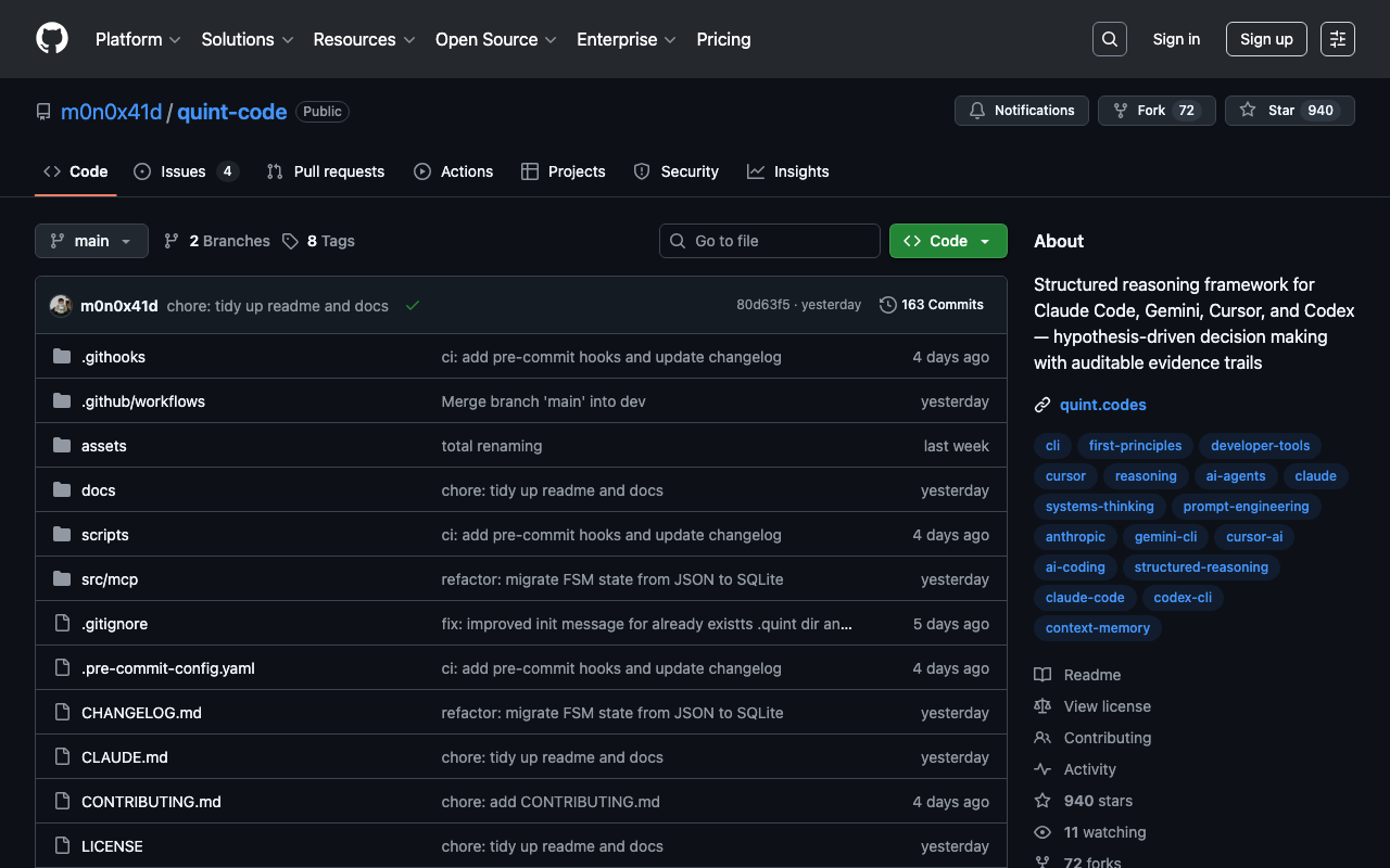 Structured reasoning framework for Claude Code, Gemini, Cursor, and Codex — hypothesis-driven decision making with auditable evidence trails