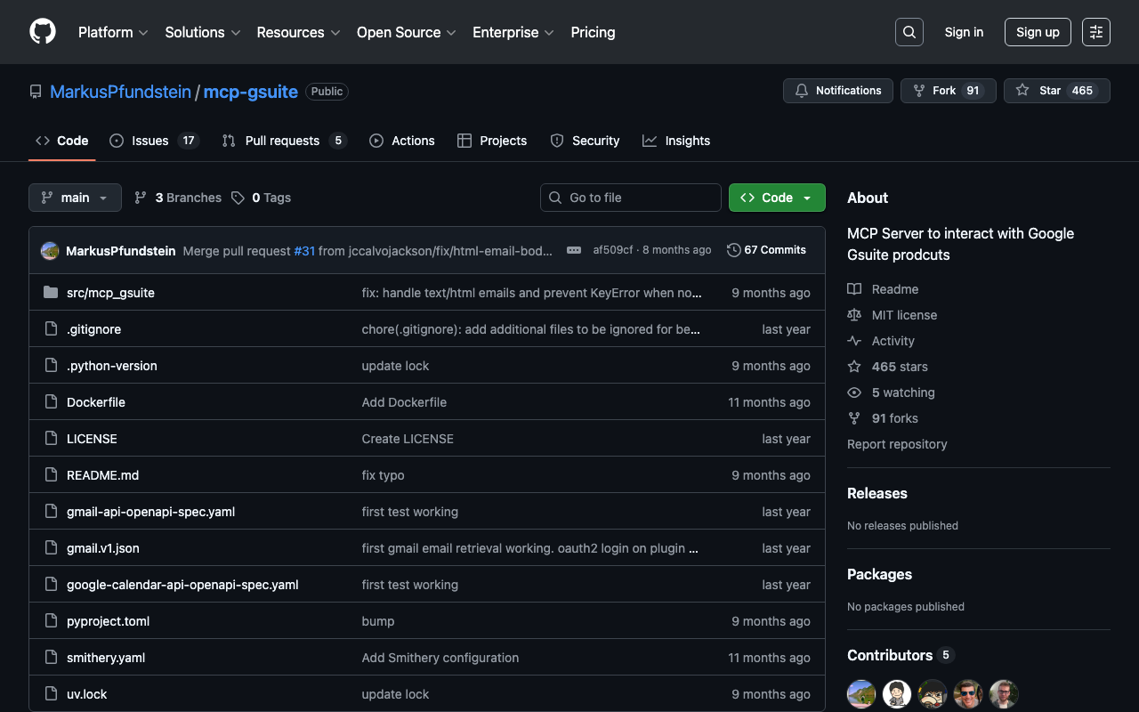 Extend Claude with MarkusPfundstein mcp gsuite capabilitiesIntegrate external data into AI conversationsAutomate workflows combining Claude with specialized servicesBuild custom AI-powered development tools