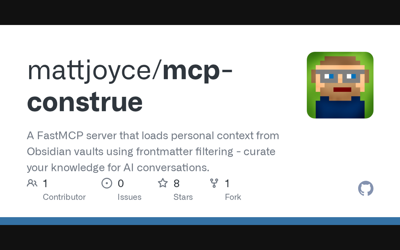 FastMCP server for intelligent Obsidian vault context management with frontmatter filtering, automatic chunking, and secure bidirectional knowledge operations.