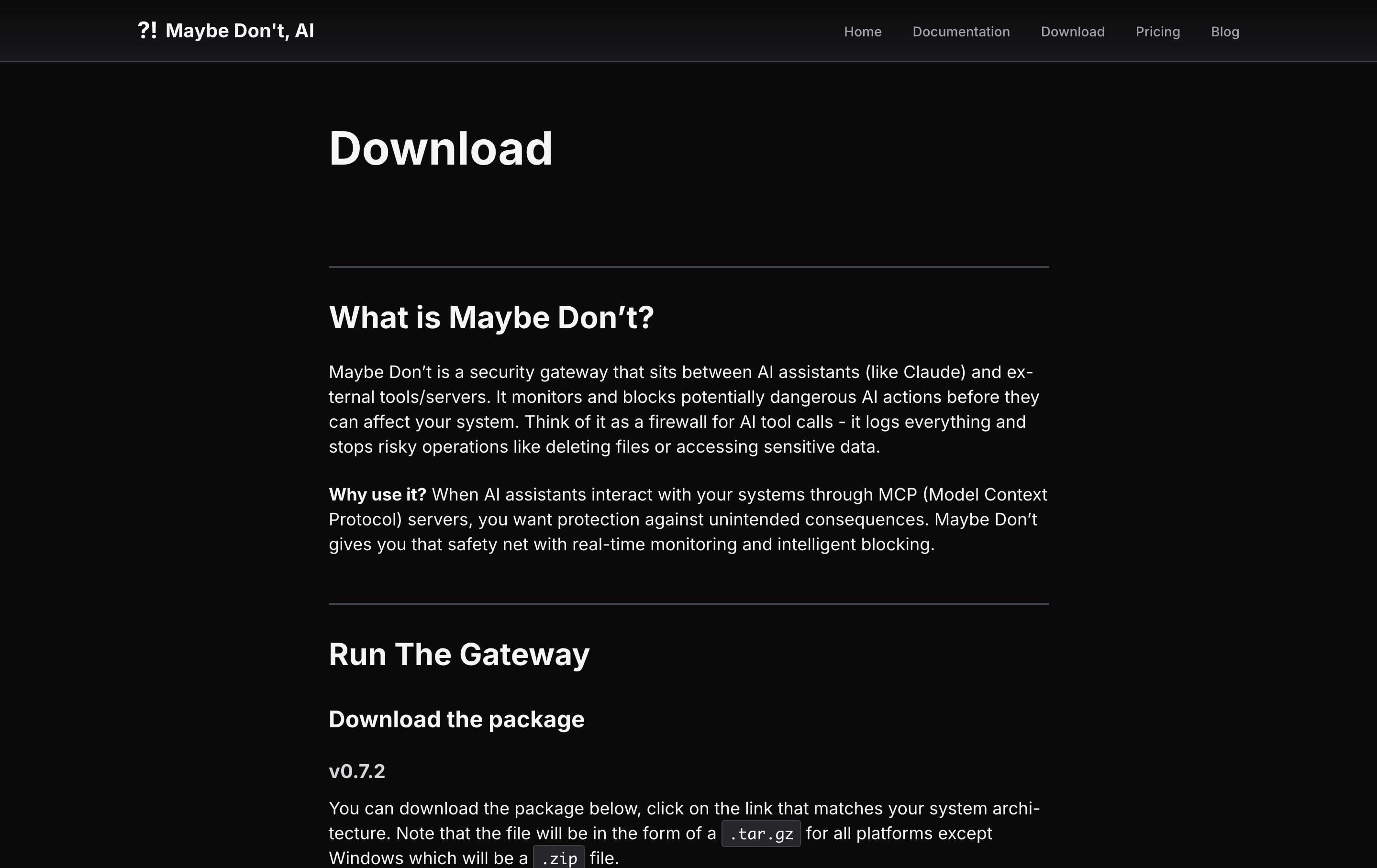 Yet another MCP security gateway, Maybe Don't AI provides policy checks on any call before it reaches downstream MCP servers to protect users from agents behaving poorly.
