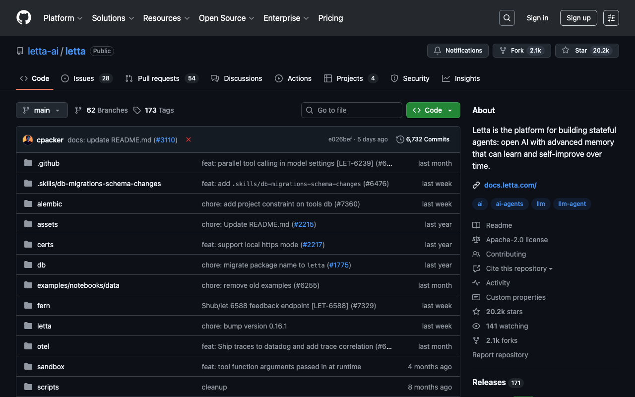 Letta is the platform for building stateful agents: open AI with advanced memory that can learn and self-improve over time.