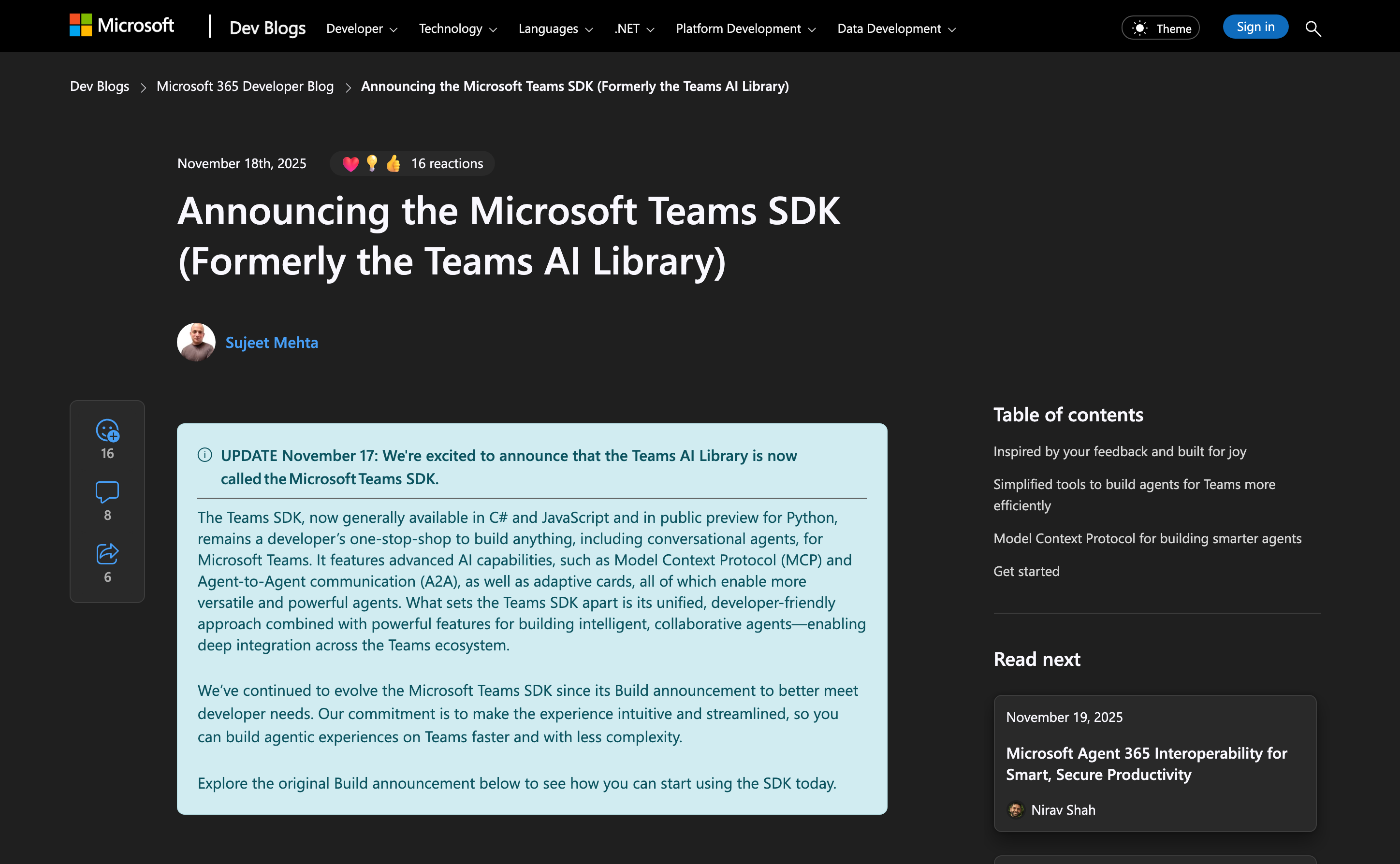 Official Microsoft Teams AI Library with MCP support enabling advanced agent orchestration, multi-agent collaboration, and seamless integration with Teams messaging and collaboration features.