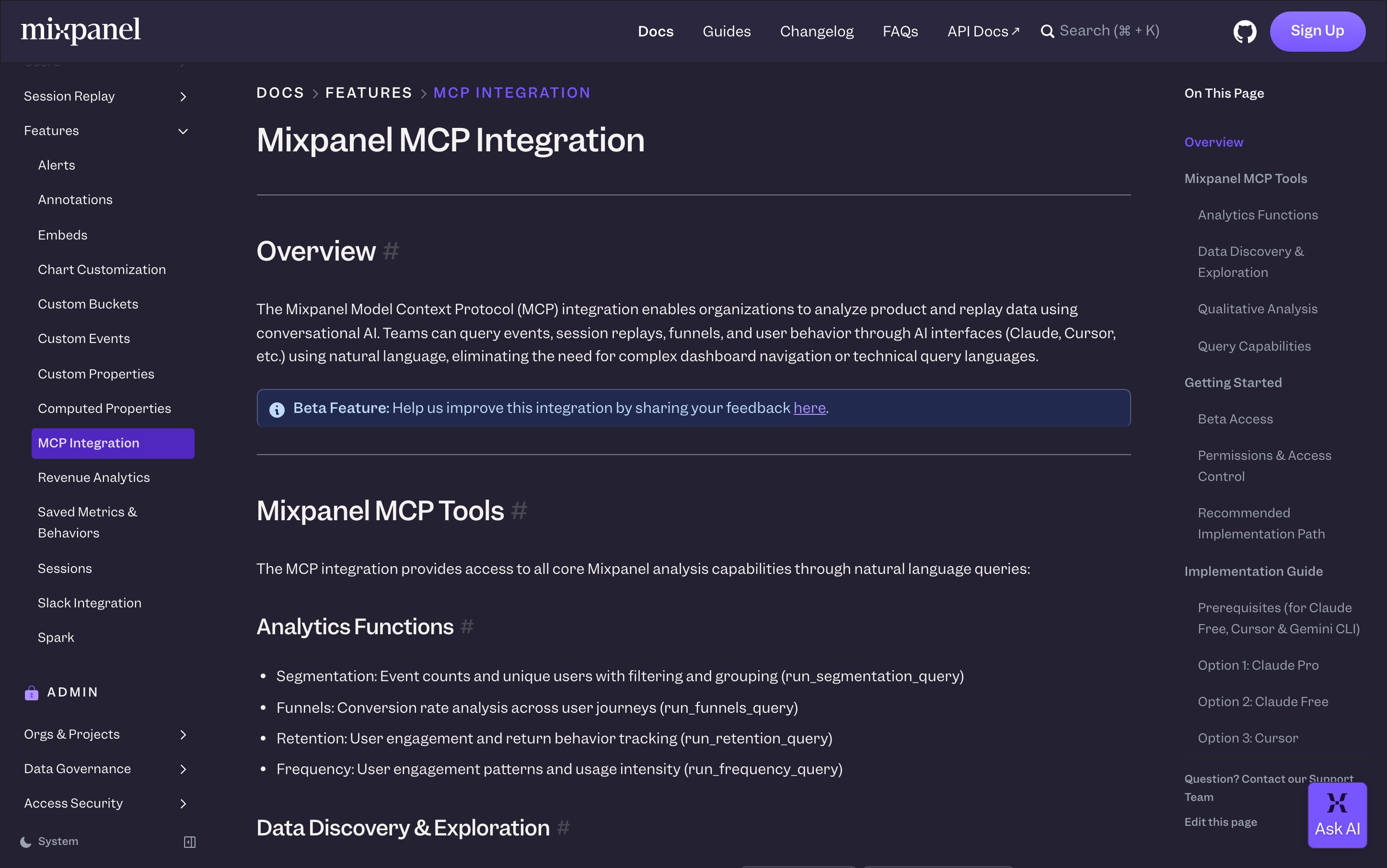 Query and analyze your product analytics data through natural language. This Mixpanel MCP connects AI assistants to your Mixpanel workspace, enabling conversational access to user behavior insights, funnels, retention analysis, and custom reports.