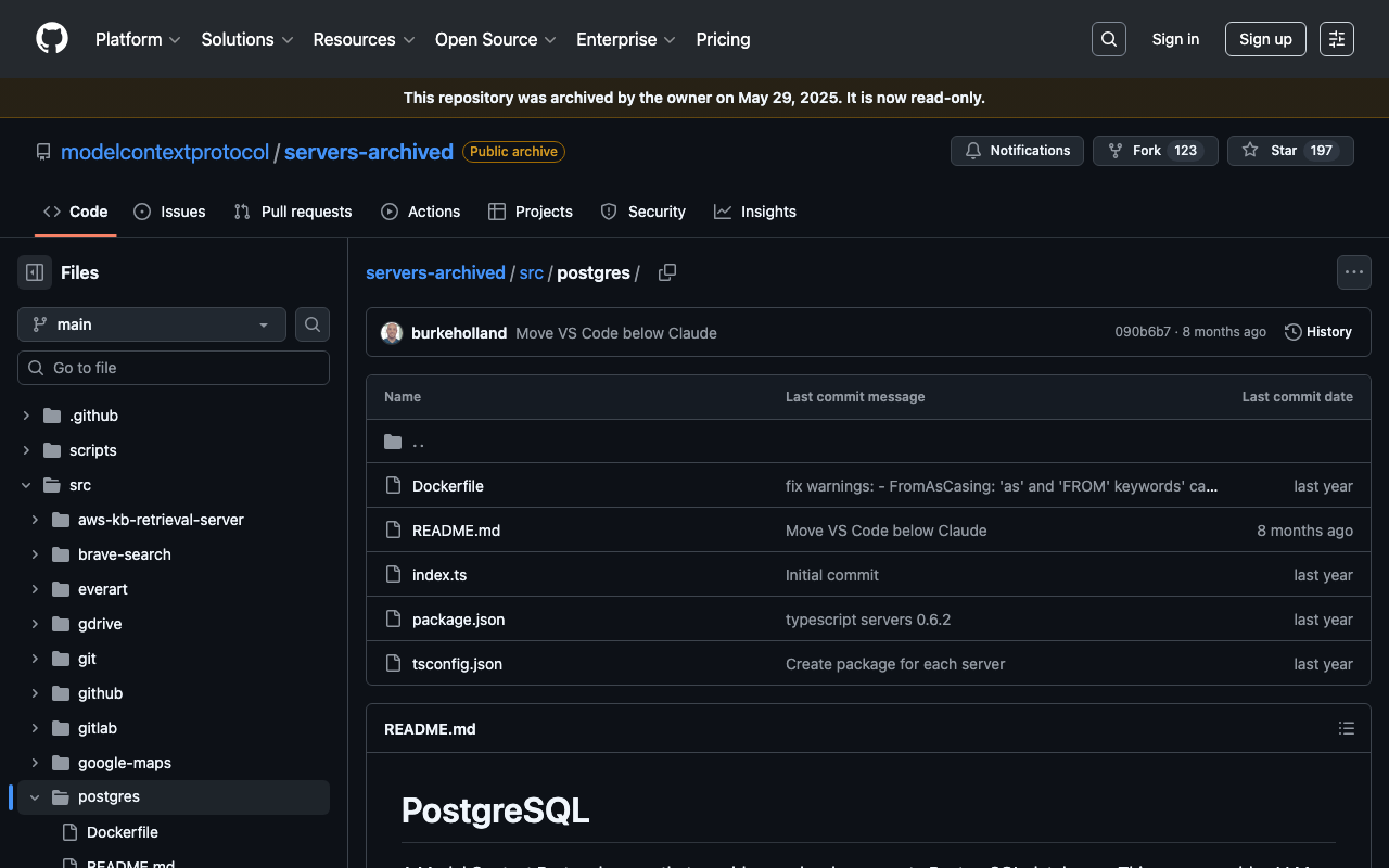 Extend Claude with modelcontextprotocol server postgres capabilitiesIntegrate external data into AI conversationsAutomate workflows combining Claude with specialized servicesBuild custom AI-powered development tools