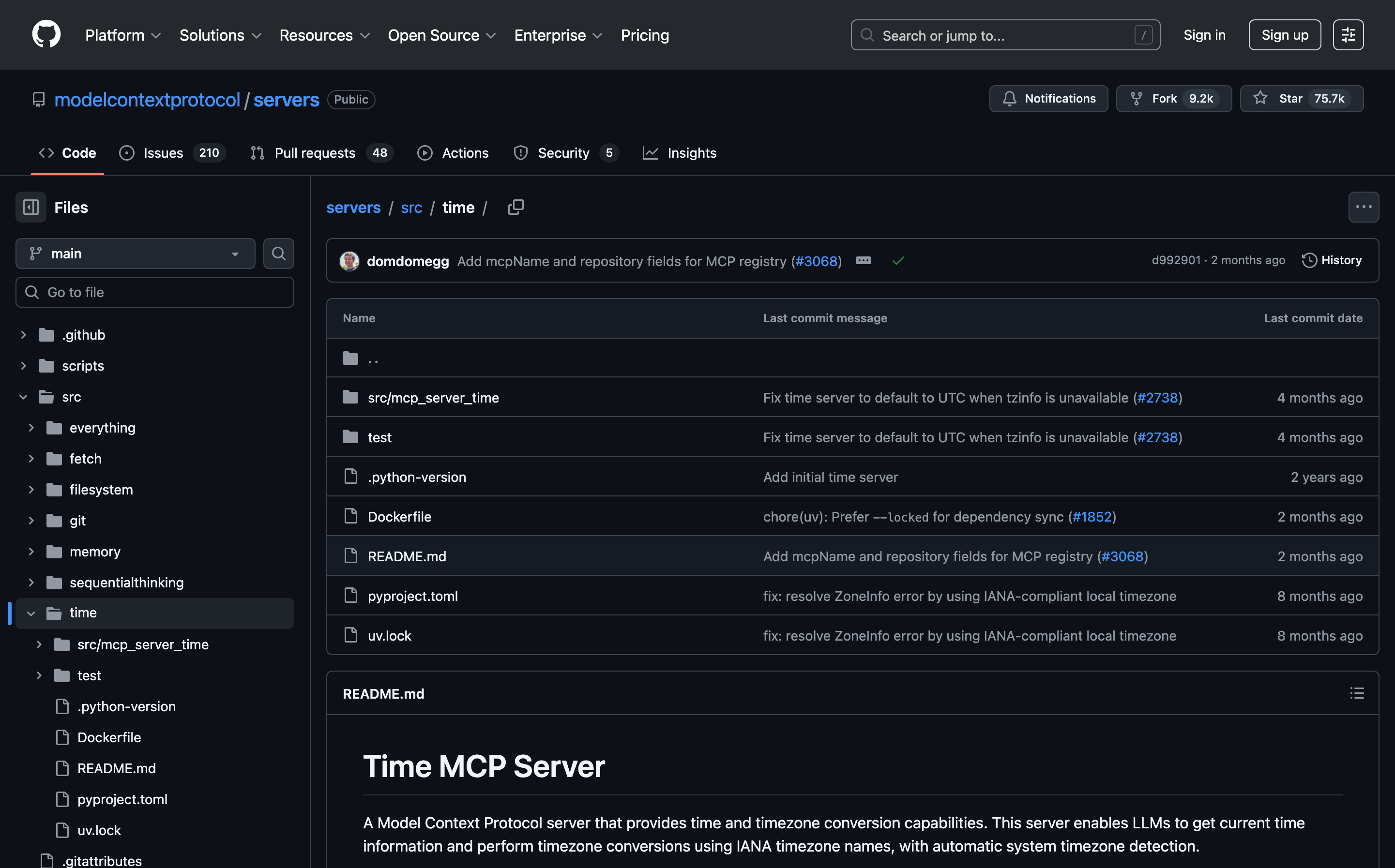 <!-- mcp-name: io.github.modelcontextprotocol/server-time --> A Model Context Protocol server that provides time and timezone conversion capabilities. This server enables LLMs to get current time information and perform timezone conversions using IANA timezone names, with automatic system timezone detection.
