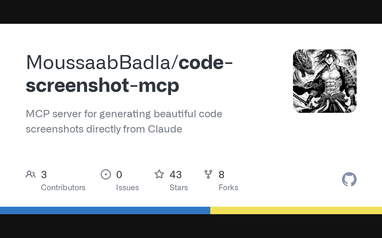 Generate beautiful syntax-highlighted code screenshots with professional themes directly from Claude. Supports file reading, line selection, git diff visualization, and batch processing.