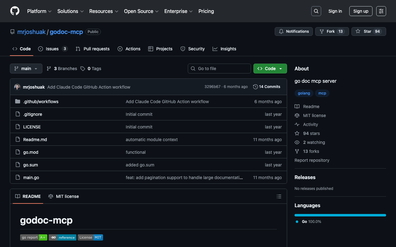 Extend Claude with mrjoshuak godoc mcp capabilitiesIntegrate external data into AI conversationsAutomate workflows combining Claude with specialized servicesBuild custom AI-powered development tools