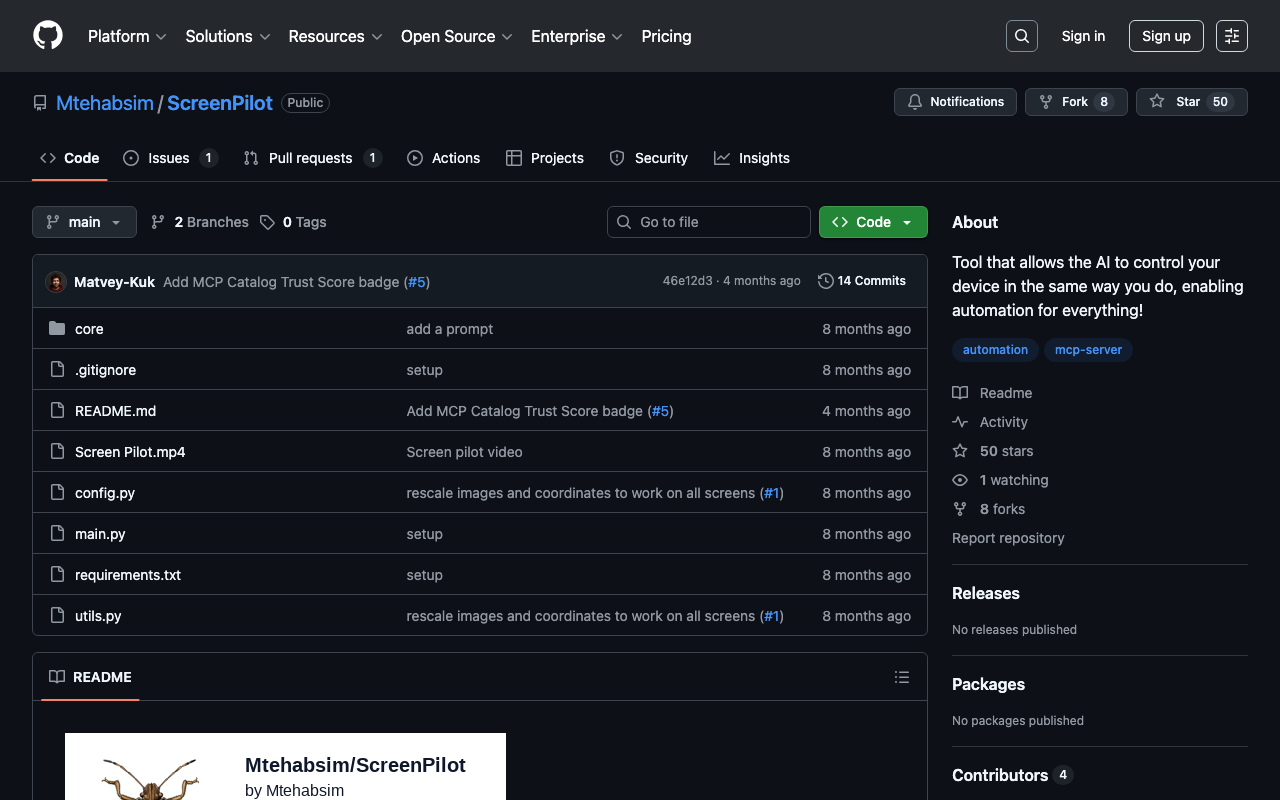 Extend Claude with Mtehabsim ScreenPilot capabilitiesIntegrate external data into AI conversationsAutomate workflows combining Claude with specialized servicesBuild custom AI-powered development tools
