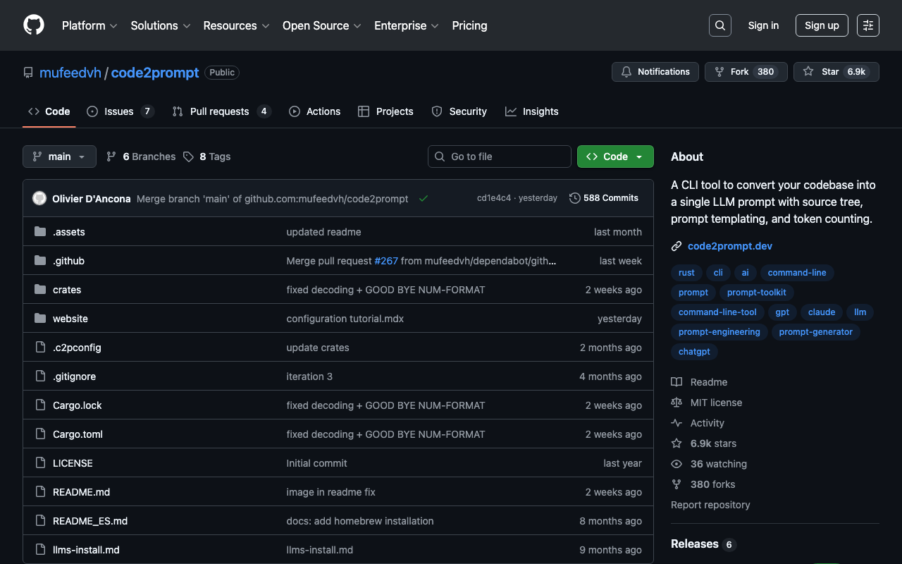 A CLI tool to convert your codebase into a single LLM prompt with source tree, prompt templating, and token counting.