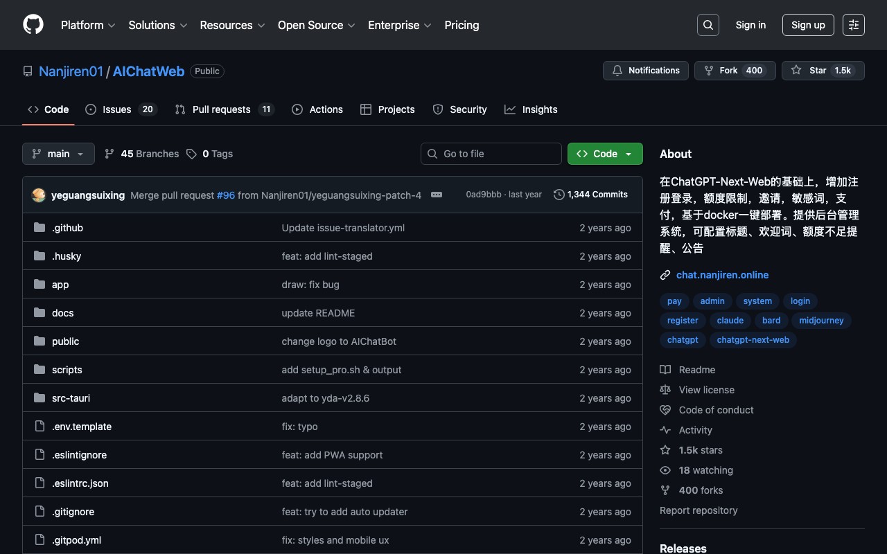 在ChatGPT-Next-Web的基础上,增加注册登录,额度限制,邀请,敏感词,支付,基于docker一键部署。提供后台管理系统,可配置标题、欢迎词、额度不足提醒、公告