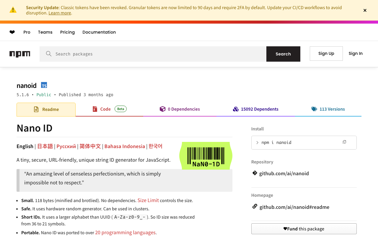 A tiny (118 bytes), secure URL-friendly unique string ID generator