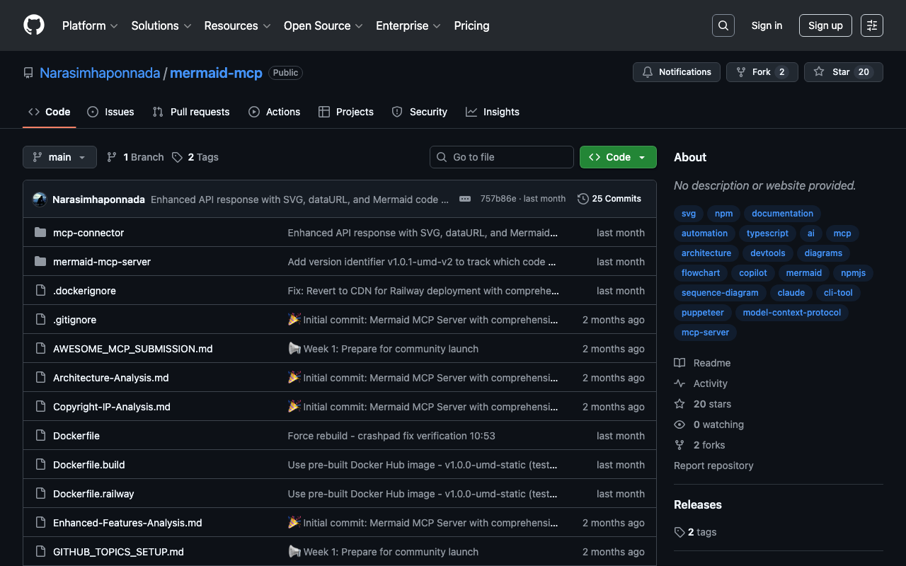 Extend Claude with Narasimhaponnada mermaid mcp capabilitiesIntegrate external data into AI conversationsAutomate workflows combining Claude with specialized servicesBuild custom AI-powered development tools