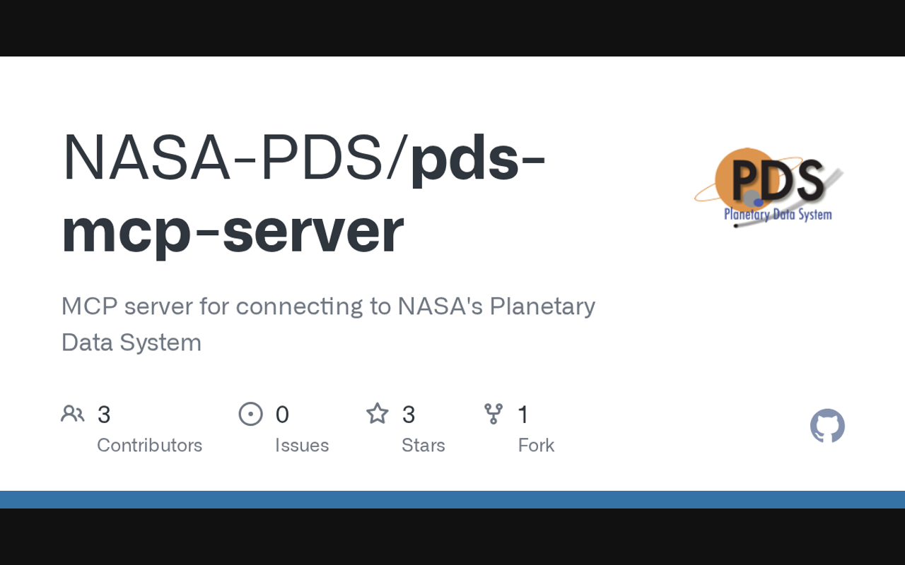 MCP server for connecting to NASA's Planetary Data System (PDS) enabling intelligent data discovery of all of NASA's data products from the 1960s to present day.