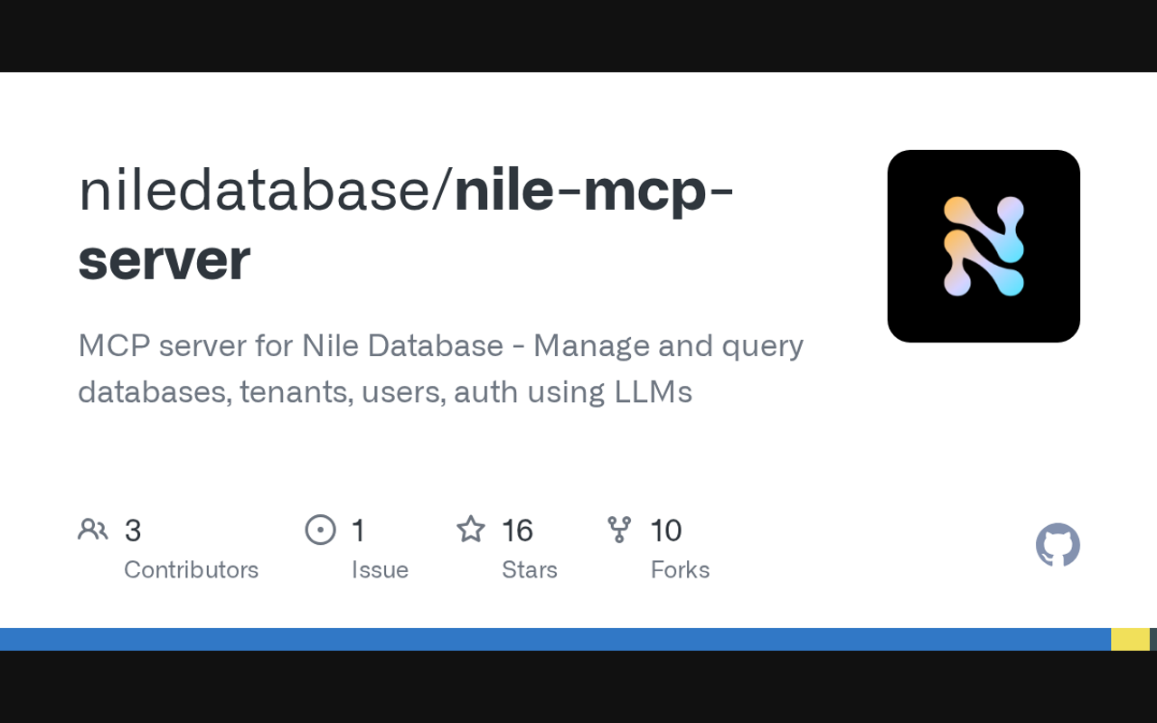 Extend Claude with niledatabase nile mcp server capabilitiesIntegrate external data into AI conversationsAutomate workflows combining Claude with specialized servicesBuild custom AI-powered development tools
