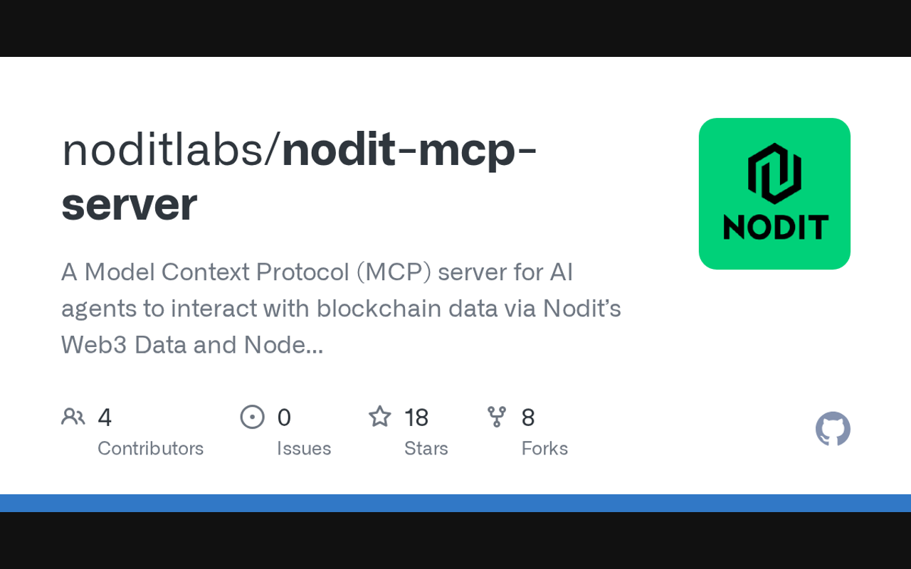 Official Nodit MCP Server enabling access to multi-chain RPC Nodes and Data APIs for blockchain data.