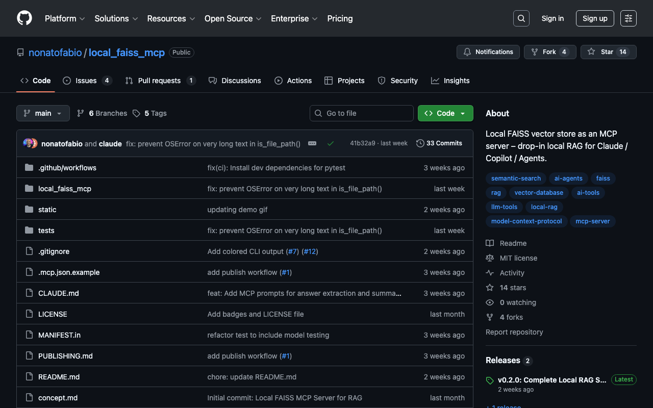 Extend Claude with nonatofabio local faiss mcp capabilitiesIntegrate external data into AI conversationsAutomate workflows combining Claude with specialized servicesBuild custom AI-powered development tools