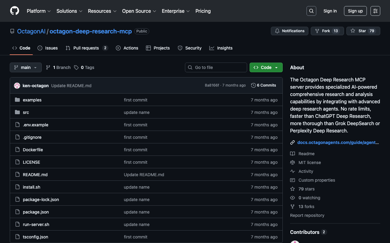The Octagon Deep Research MCP server provides specialized AI-powered comprehensive research and analysis capabilities by integrating with advanced deep research agents. No rate limits, faster than ChatGPT Deep Research, more thorough than Grok DeepSearch or Perplexity Deep Research.