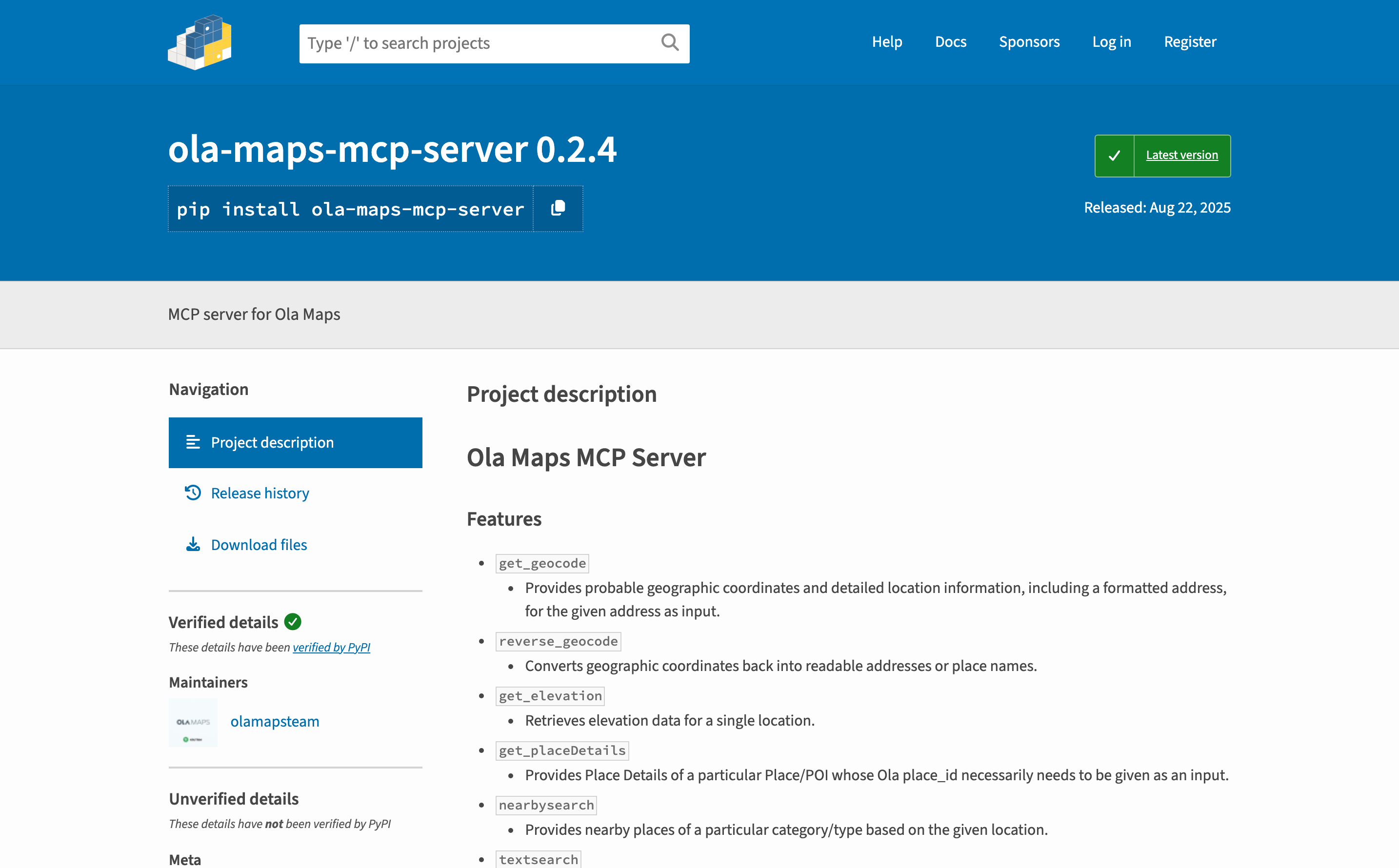 Official Ola Maps MCP Server for services like geocode, directions, place details and many more.