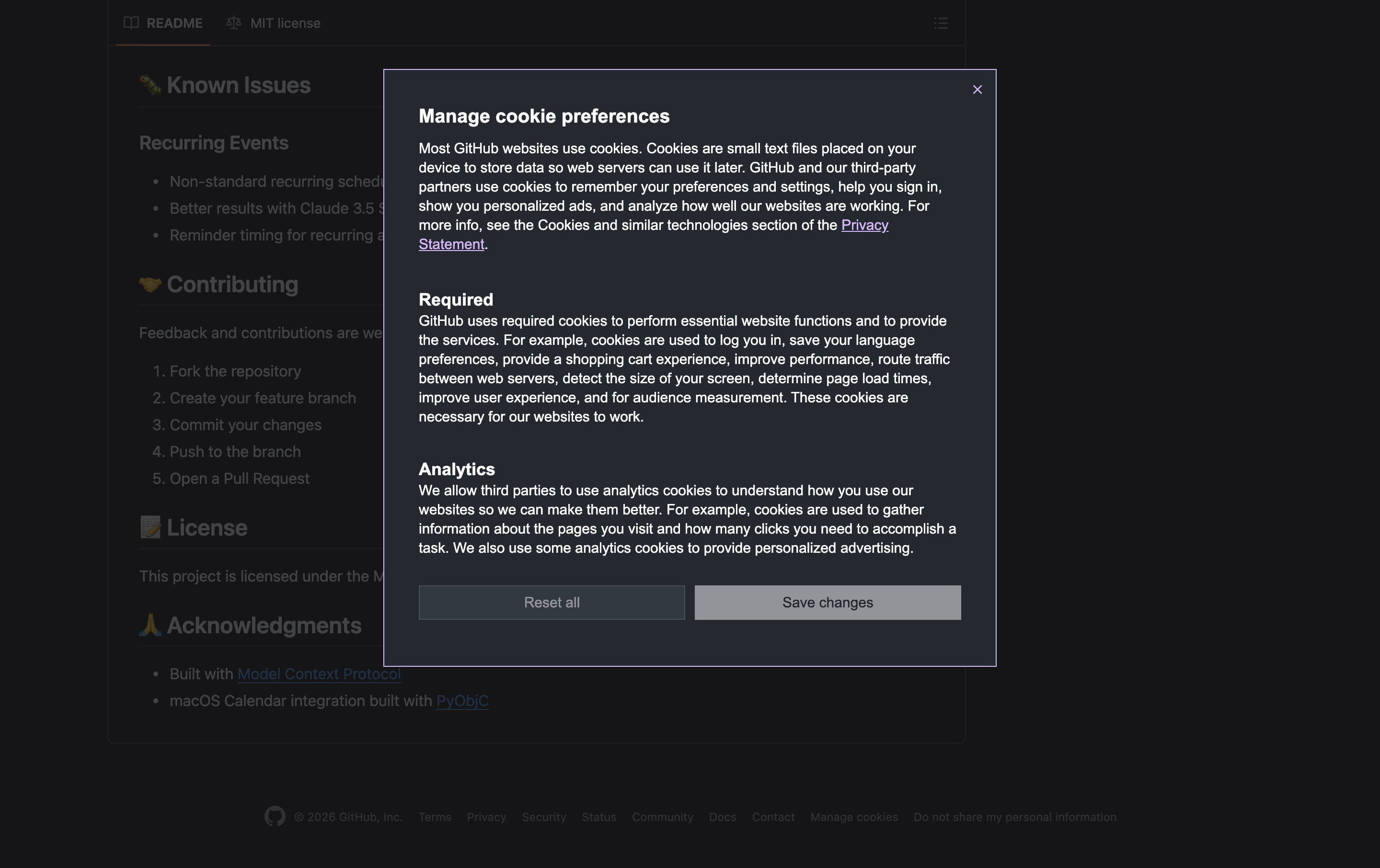An MCP server that allows you to interact with your macOS Calendar through natural language, including features such as event creation, modification, schedule listing, finding free time slots etc.