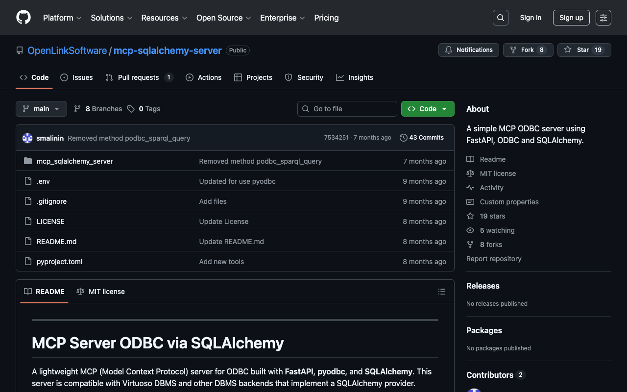 Extend Claude with openlink mcp server sqlalchemy capabilitiesIntegrate external data into AI conversationsAutomate workflows combining Claude with specialized servicesBuild custom AI-powered development tools