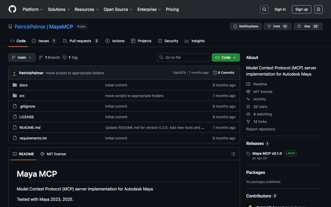 Extend Claude with PatrickPalmer MayaMCP capabilitiesIntegrate external data into AI conversationsAutomate workflows combining Claude with specialized servicesBuild custom AI-powered development tools
