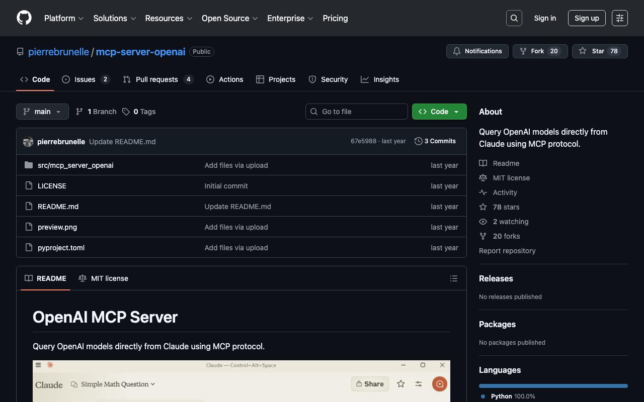 Extend Claude with pierrebrunelle mcp server openai capabilitiesIntegrate external data into AI conversationsAutomate workflows combining Claude with specialized servicesBuild custom AI-powered development tools