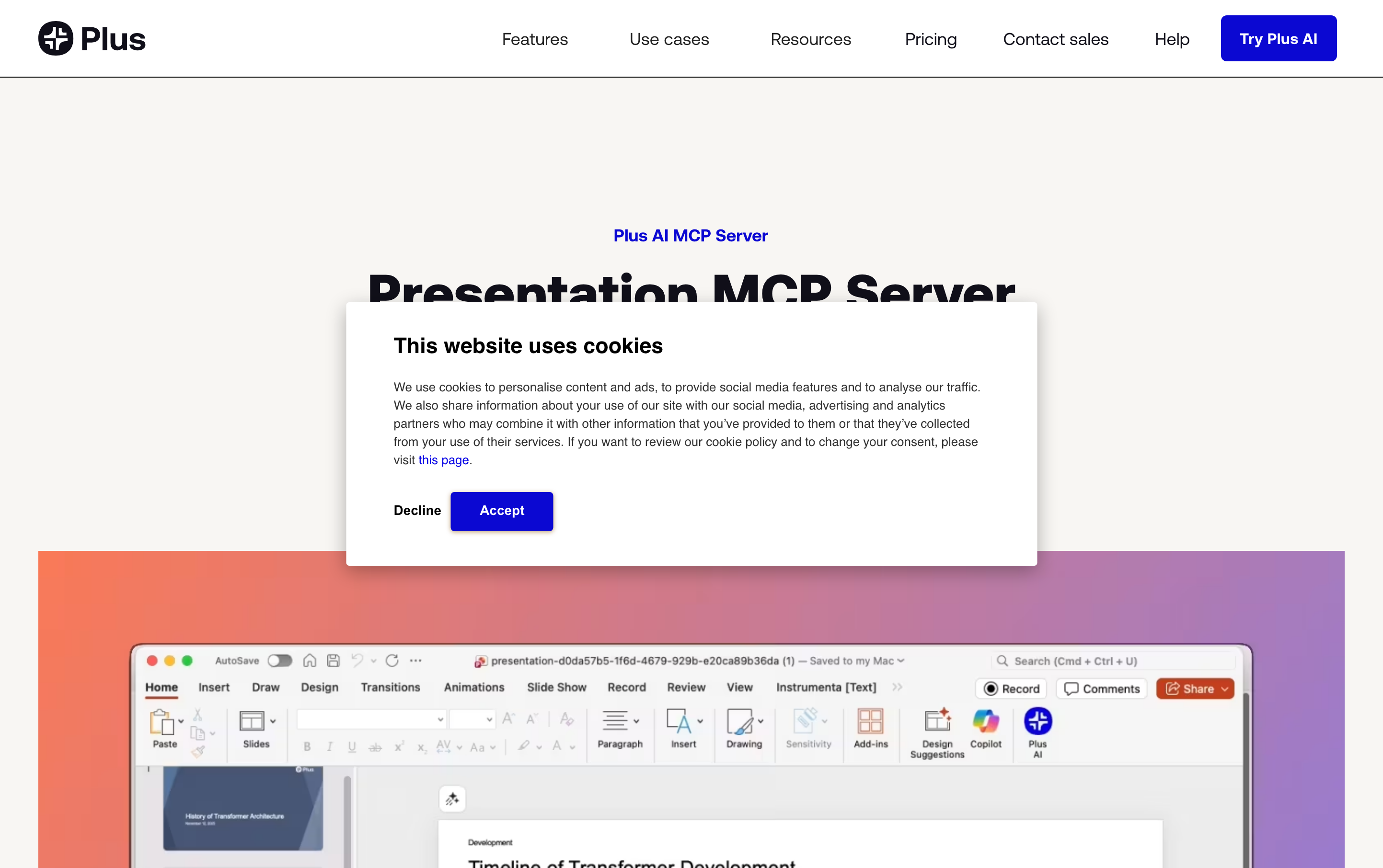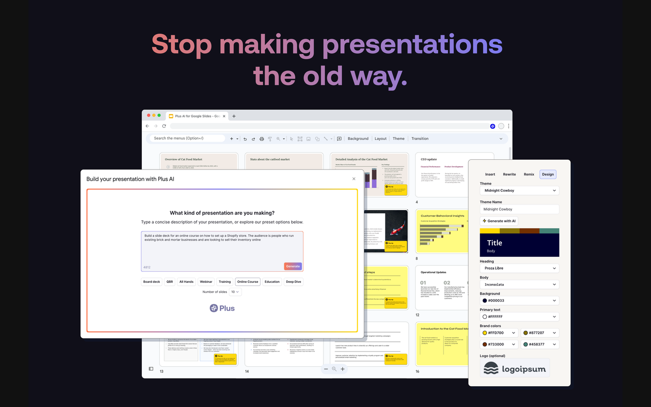 A Model Context Protocol (MCP) server for automatically generating professional PowerPoint and Google Slides presentations using the [Plus AI](https://plusai.com/) presentation API.