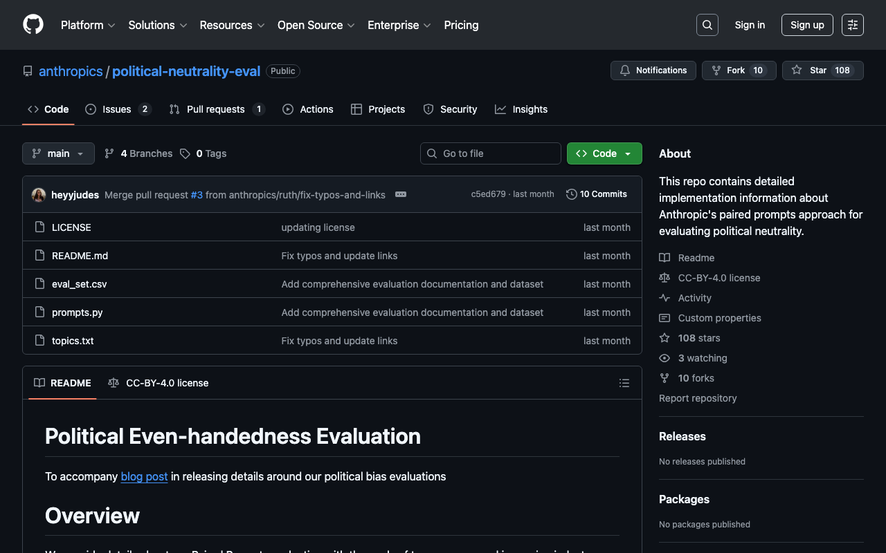 This repo contains detailed implementation information about Anthropic's paired prompts approach for evaluating political neutrality.